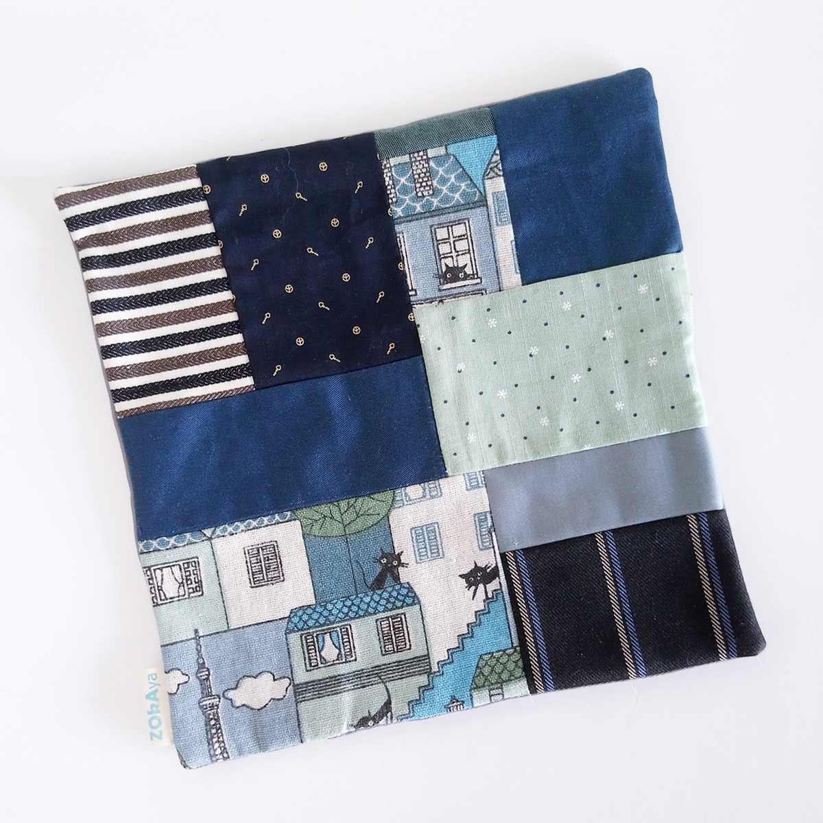 Taking the pattern fabric with cute black cats as the main focus, worked around it with fabrics with similar colour tone. It's cool but adorable!