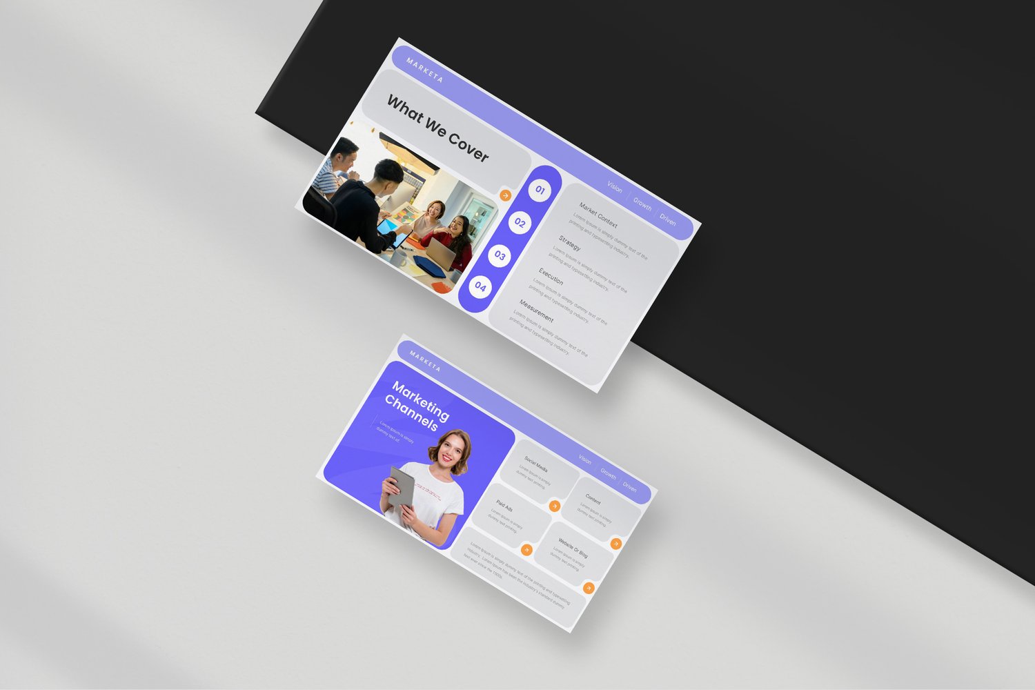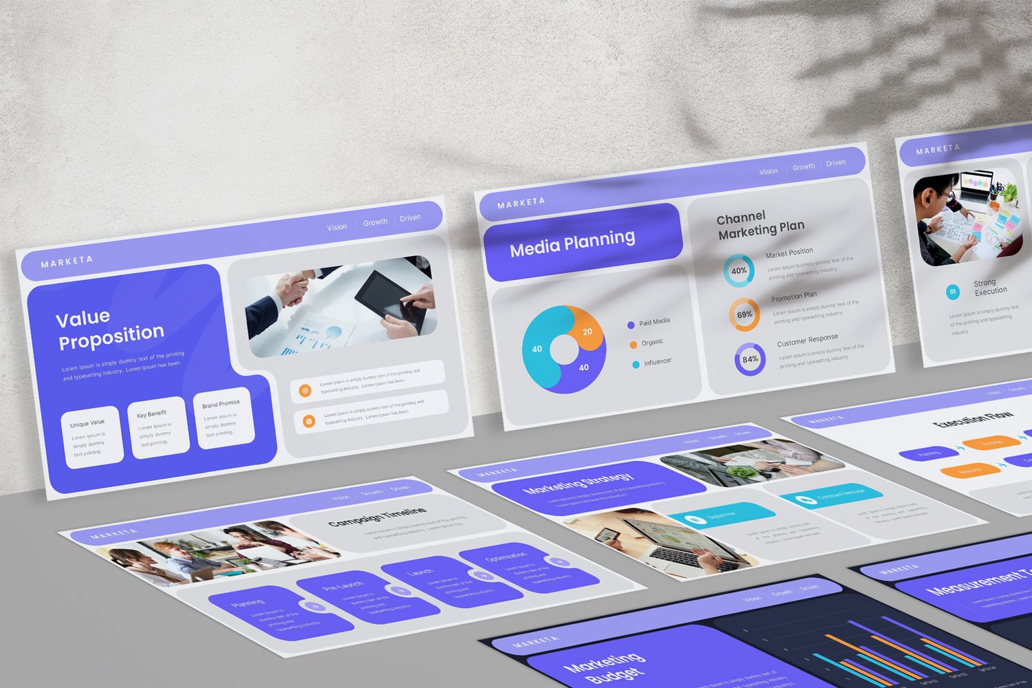 Marketa is a modern marketing plan presentation template designed to help teams present strategies, campaigns, and growth plans with clarity and confidence.