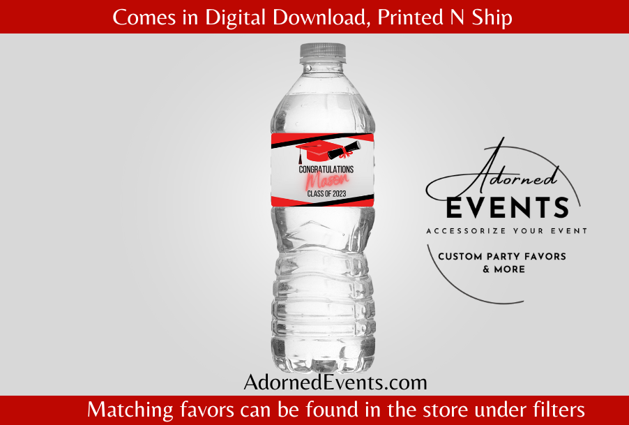 Graduation Water Bottle Labels (20) - milestone, Red, black