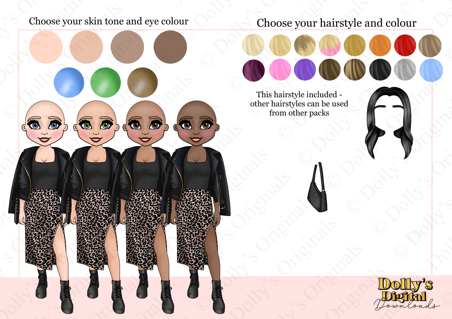 Instant digital download of our Leather Jacket and Leopard Dolly Character Bundle PNG (29 PNG’s)