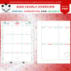 The Christian (Gregorian) calendar is used world-wide as the universal calendar for business, much like English is a universal business language. The Jewish and Islamic calendars are still in use today by members of those faiths and in certain countries. As a result, calendars combining one of these with the Gregorian calendar are readily available, but this calendar combines all three so we can all use the same one.