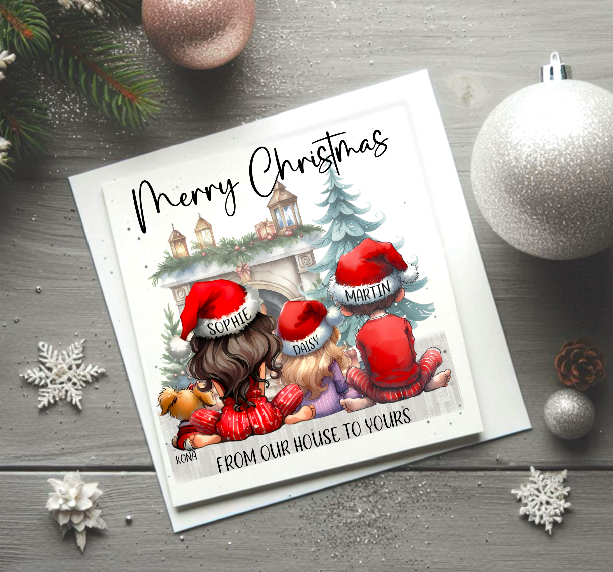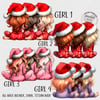 Whimsical Christmas family, 4 girls, 4 boys, hair colour options, dogs + background file. 27 clipart PNG