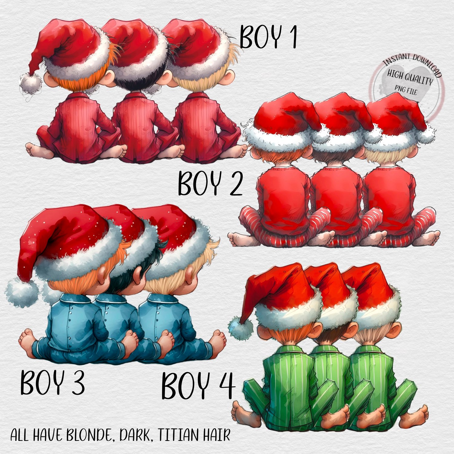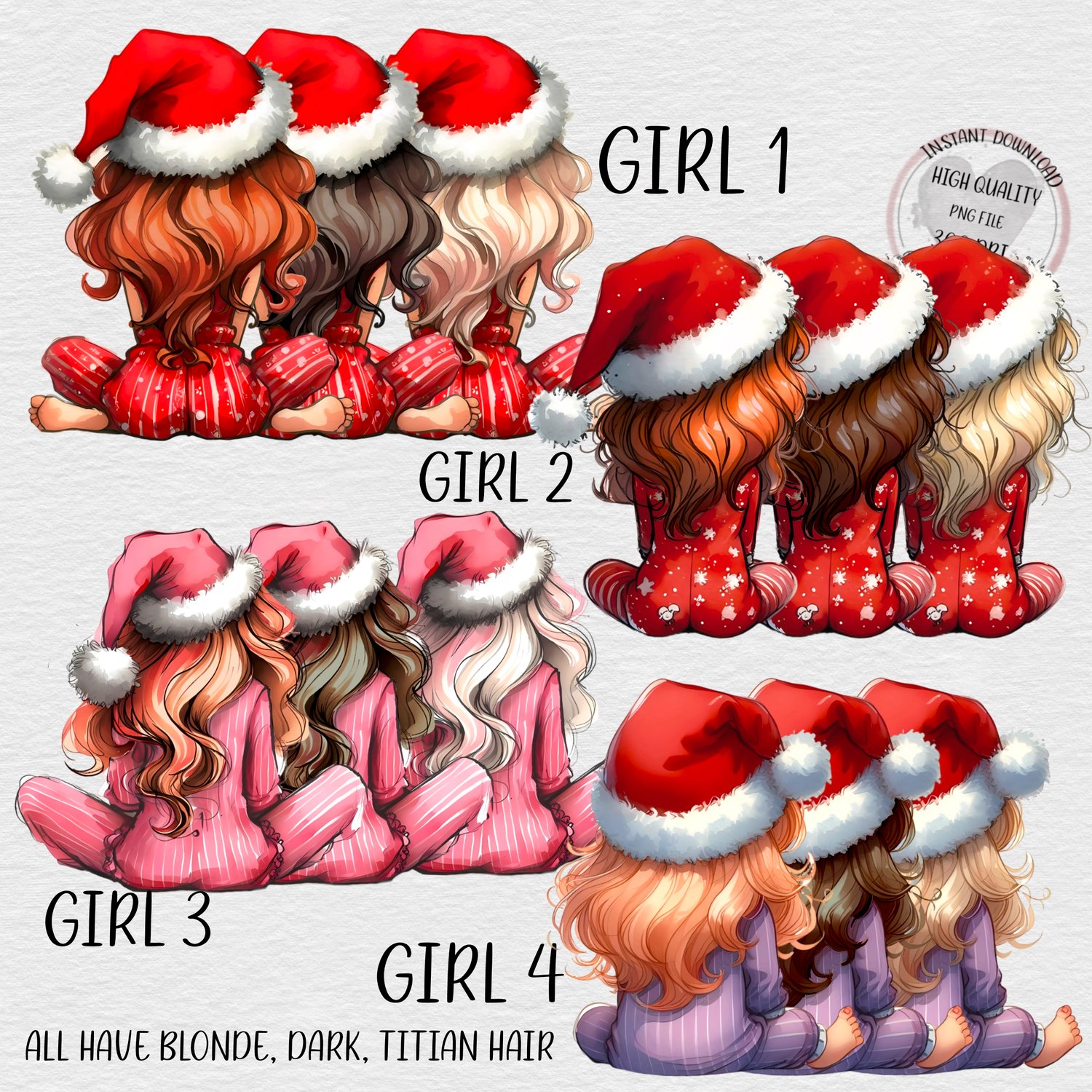 Whimsical Christmas family, 4 girls, 4 boys, hair colour options, dogs + background file. 27 clipart PNG files. Sublimation, Print DTF etc.
