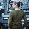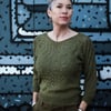 Knit from the top down and partially on the bias, the Corbis sweater is all about framing the face and neck in the most elegant way. The rhythmic basketweave yoke changes organically into tactile diamond shapes resulting in a powerful and dynamic interplay of lines and shapes for a stunning visual effect.