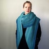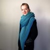The regular sized scarf wraps around the neck once, while the super-sized scarf wraps around the neck twice.