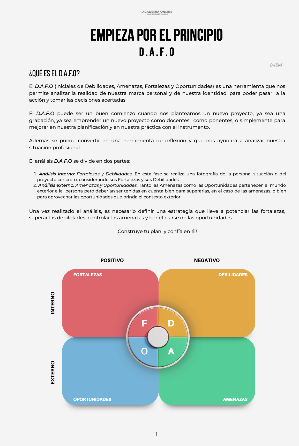 D.A.F.O es una herramienta muy interesante que nos permite tanto como para descubrir y valorar nuestras fortalezas, como para detectar nuestros puntos débiles.