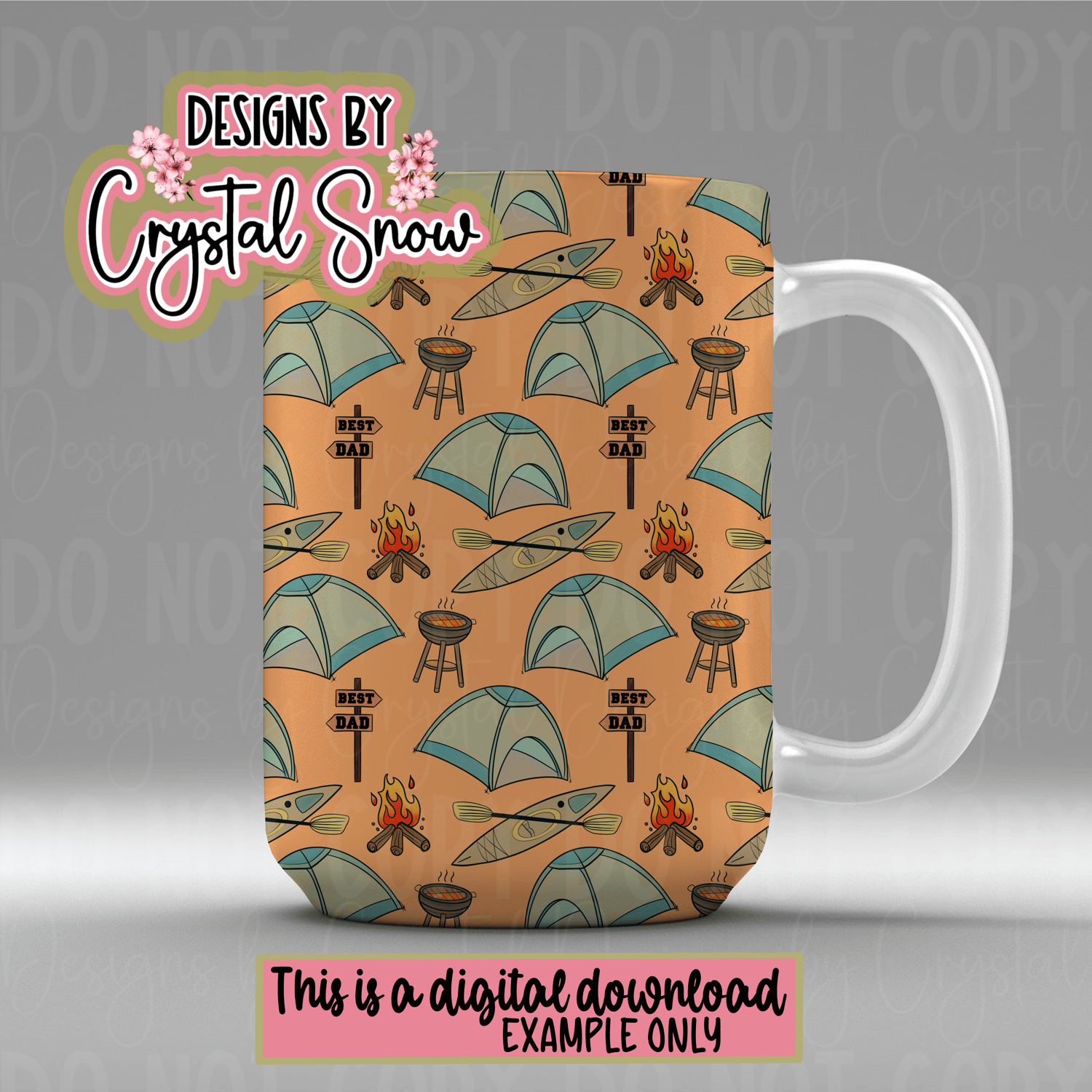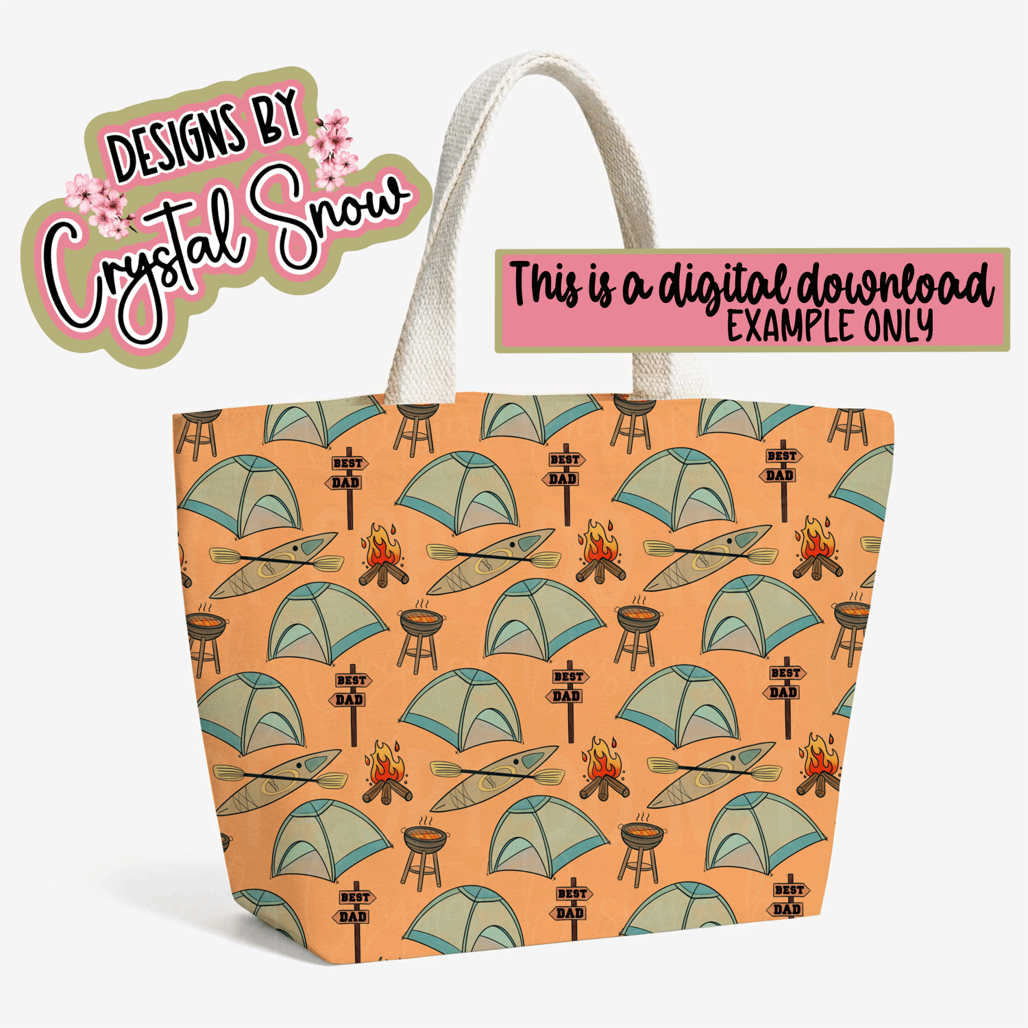 Best Camping Dad Seamless Pattern | 12x12 Hand Drawn Tile | Tent BBQ Kayak PNG for Father’s Day, Sublimation & Crafts