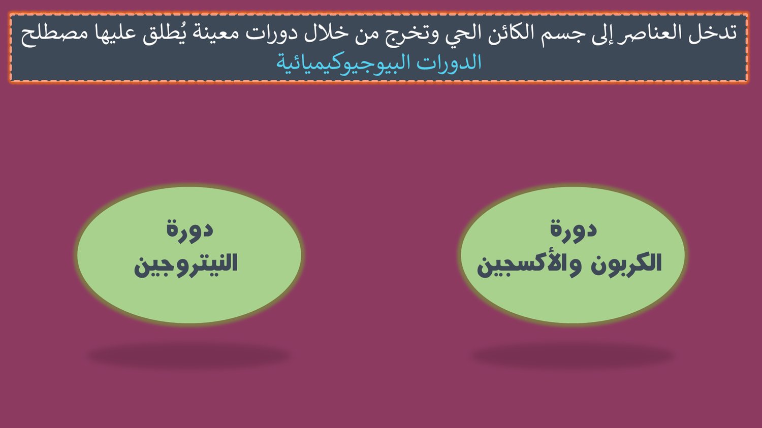 العرض يحتوي على شرح لدرس الدورات البيوجيو كيميائية للصف الحادي عشر