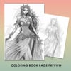 20 Elf and Druid Fantasy Woman Coloring Page Book, Adults + kids- Instant Download - Grayscale Coloring Page, Gift Printable PDF, mystical