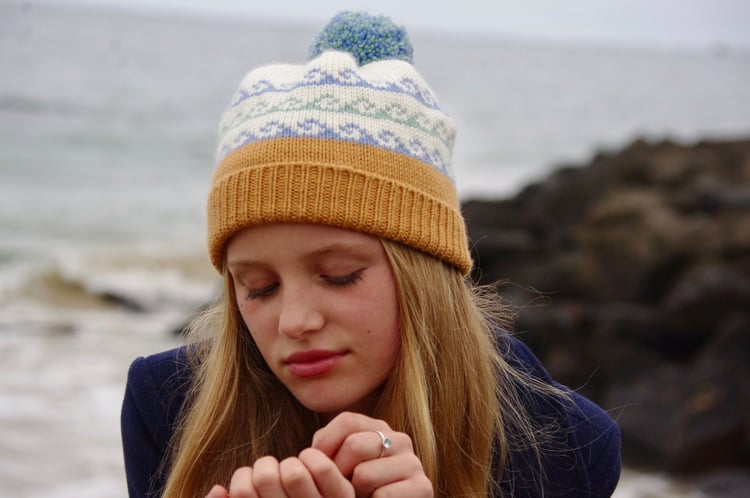 Brimpaen is a pretty beanie with a little secret: the colourwork is far simpler than it first appears. Named after the small rural community of Brimpaen in Victoria, Australia, it draws inspiration from quiet country rhythms and understated beauty. Only one colour is ever worked in a round, with the pattern’s gentle interplay of shades created through clever slip stitches. The result is a warm, snug, and softly slouchy beanie that feels both effortless to knit and timeless to wear; perfect for slow days and open skies.