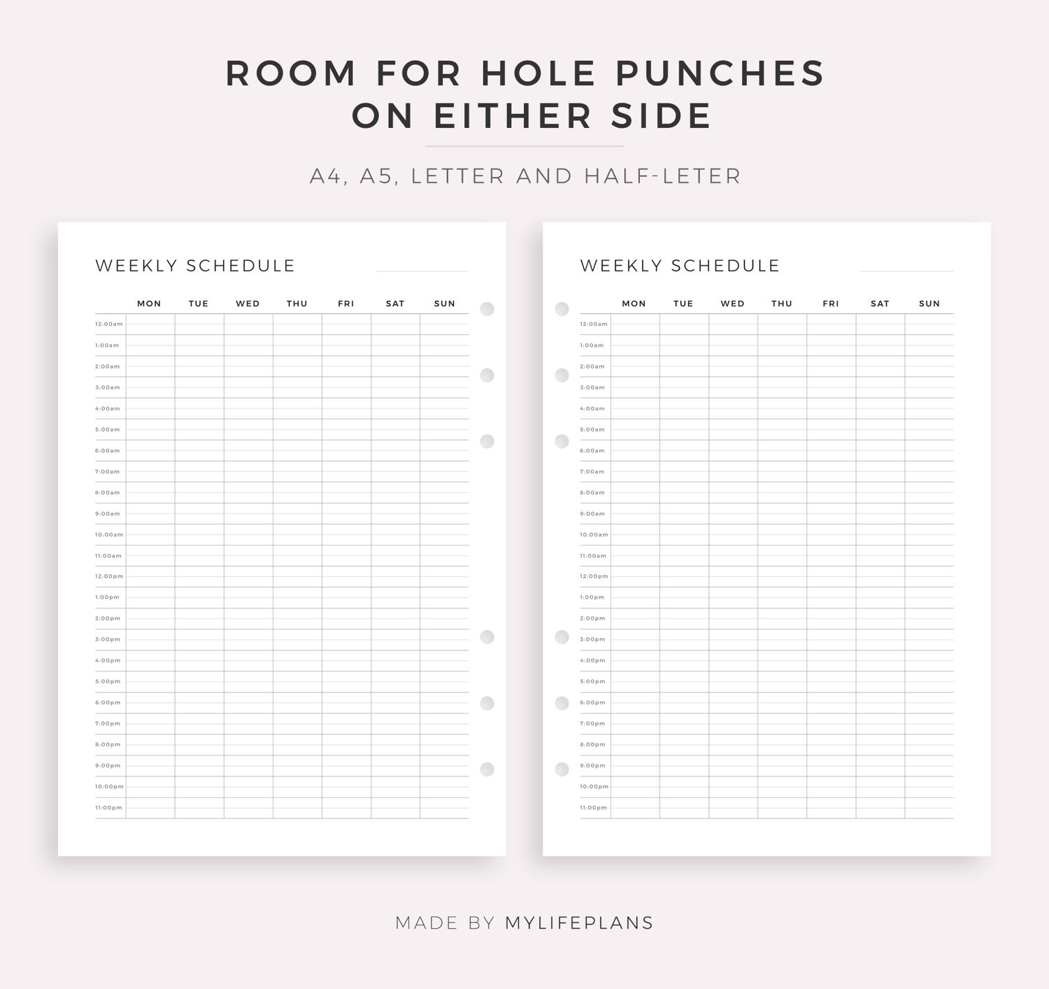 24 Hour Weekly Schedule, Printable & Fillable, A4/Letter Size