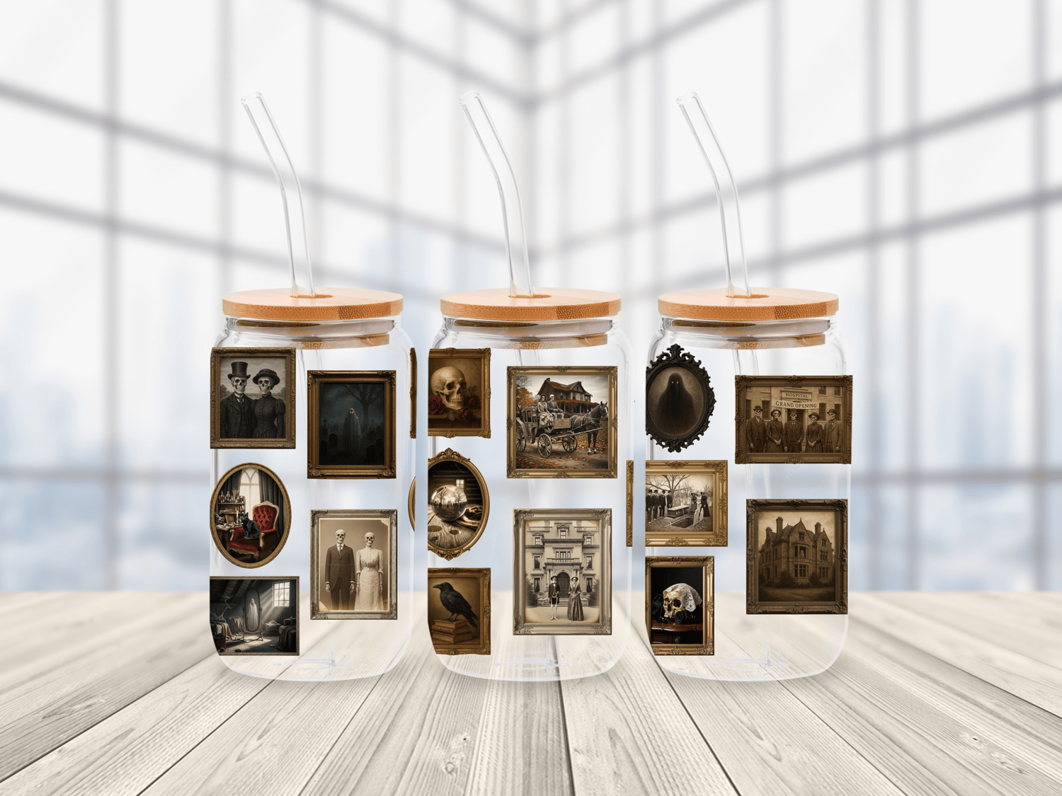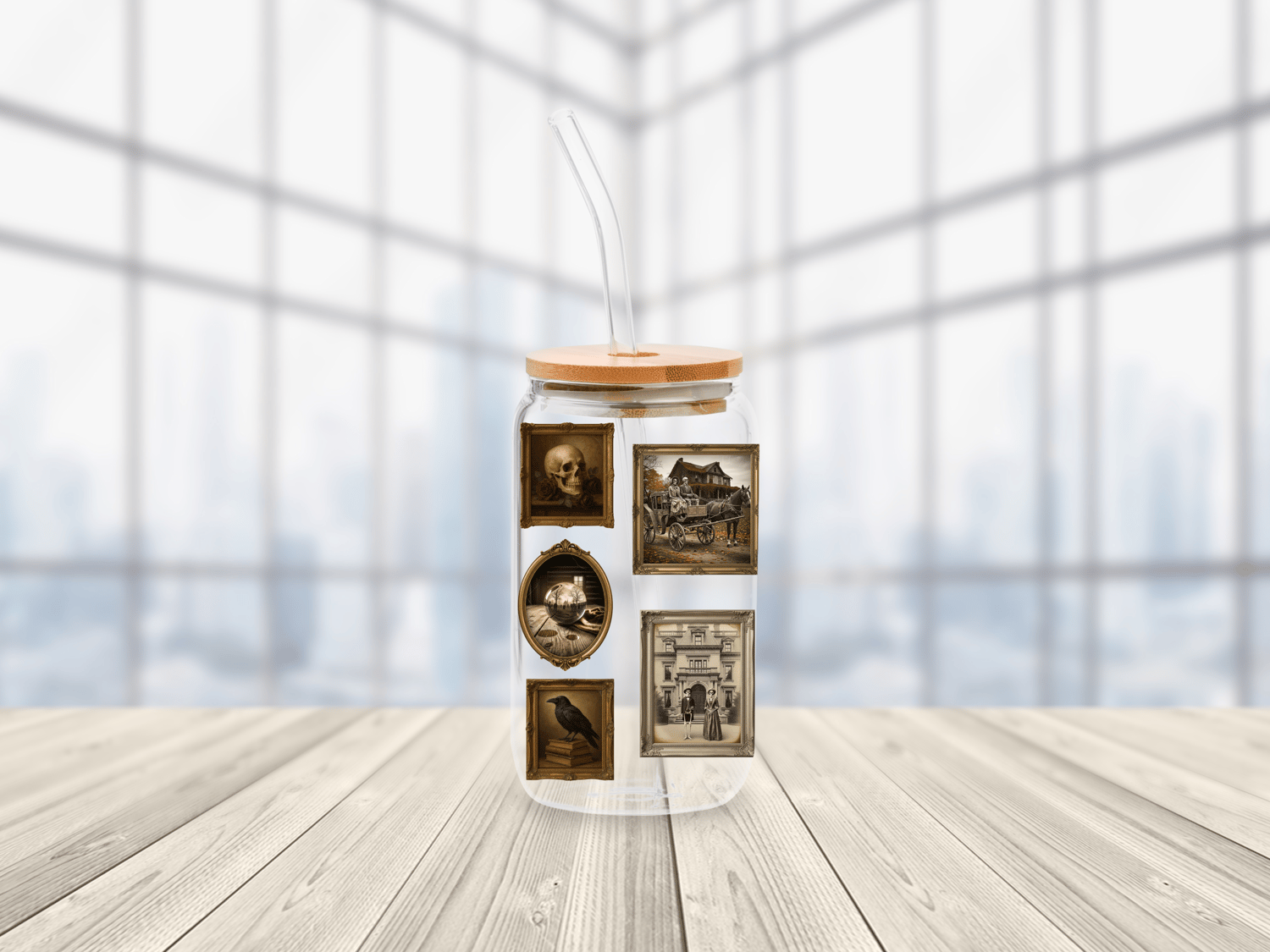 Spooky Vintage Halloween 16oz Libbey Glass Can PNG 300 DPI