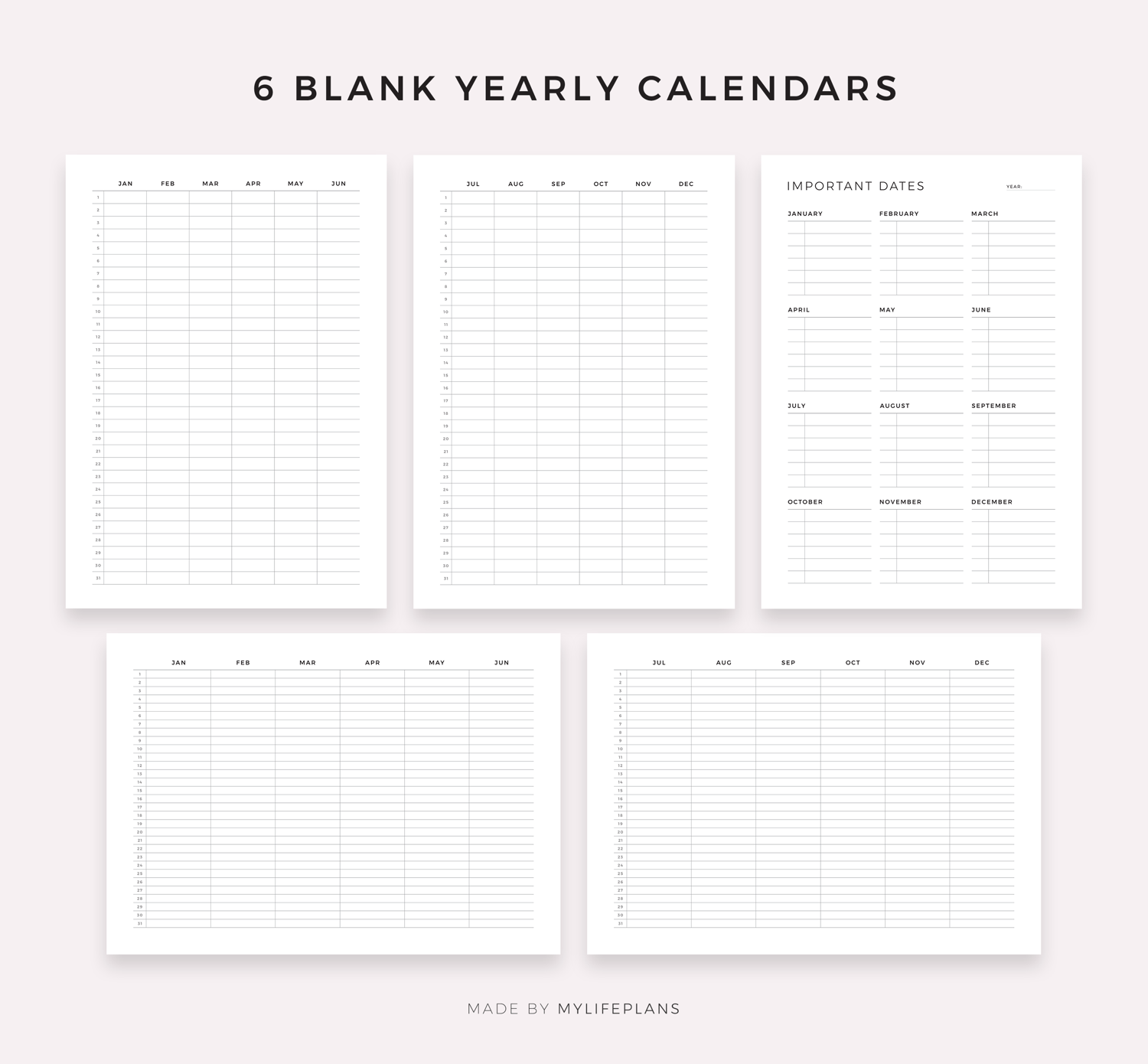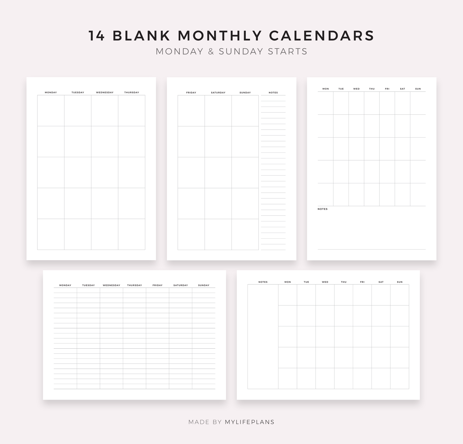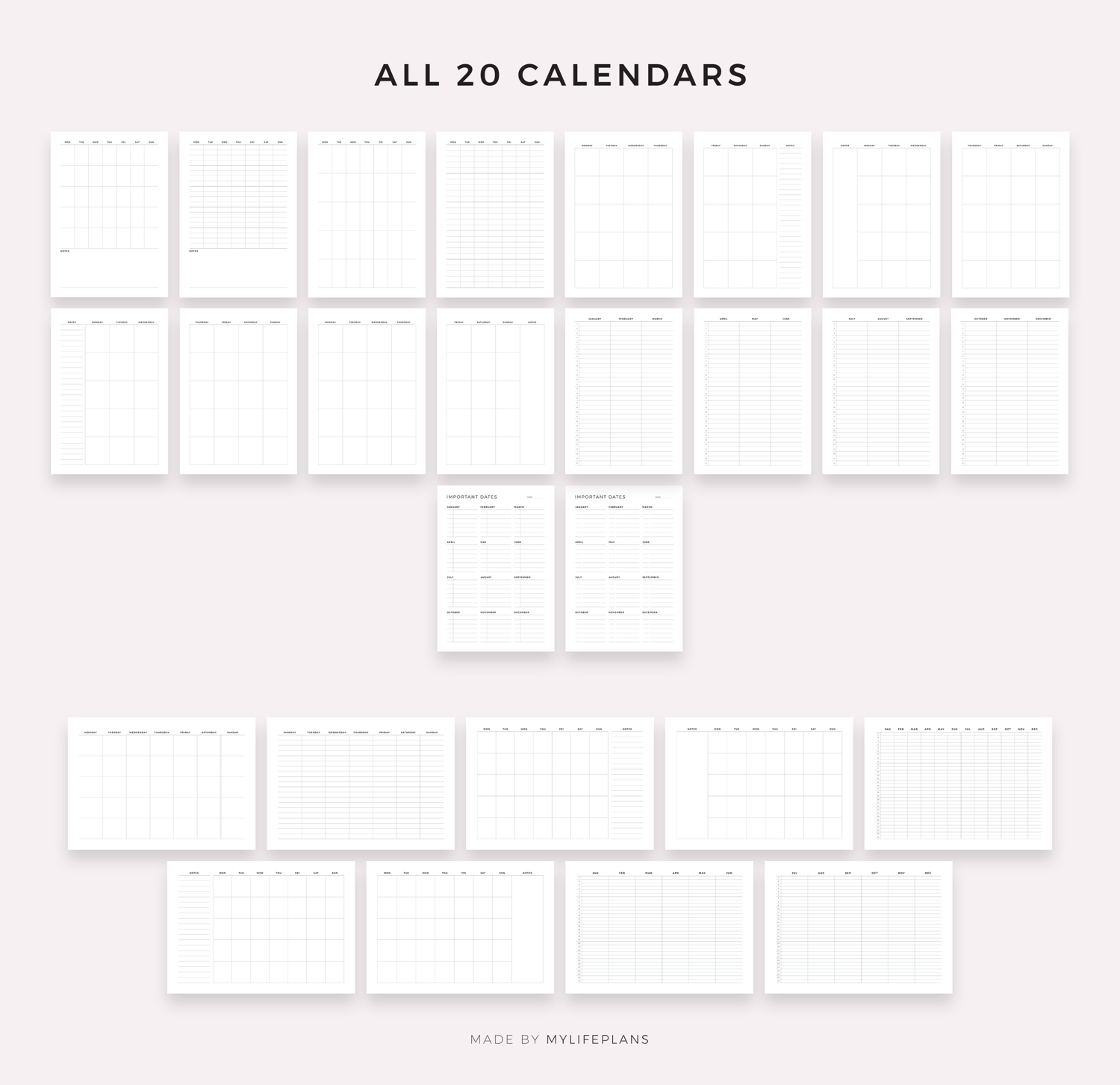 Blank Calendar bundle. It includes 21 unique printable calendars to choose from. Just download, print and get started right away!