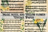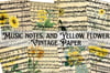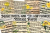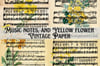 Music notes, and Yellow flower Vintage Paper, Music notes and yellow flowers Digital Paper, Music notes, and Vintage Paper, Music notes, and floral Background.