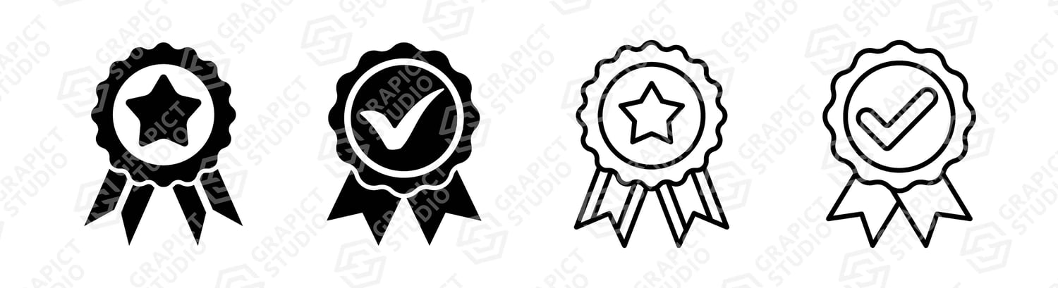 Approved medal icon design element suitable for websites, print design or app. Creative illustration outlined style, editable stroke and flat glyph style icon. Vector clipart image, graphic design element.