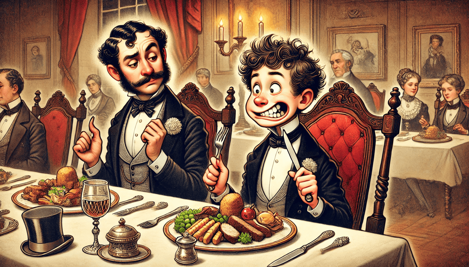 Pip’s Dining Dilemma: A Lesson in Etiquette | Oscar Wilde Digital Art