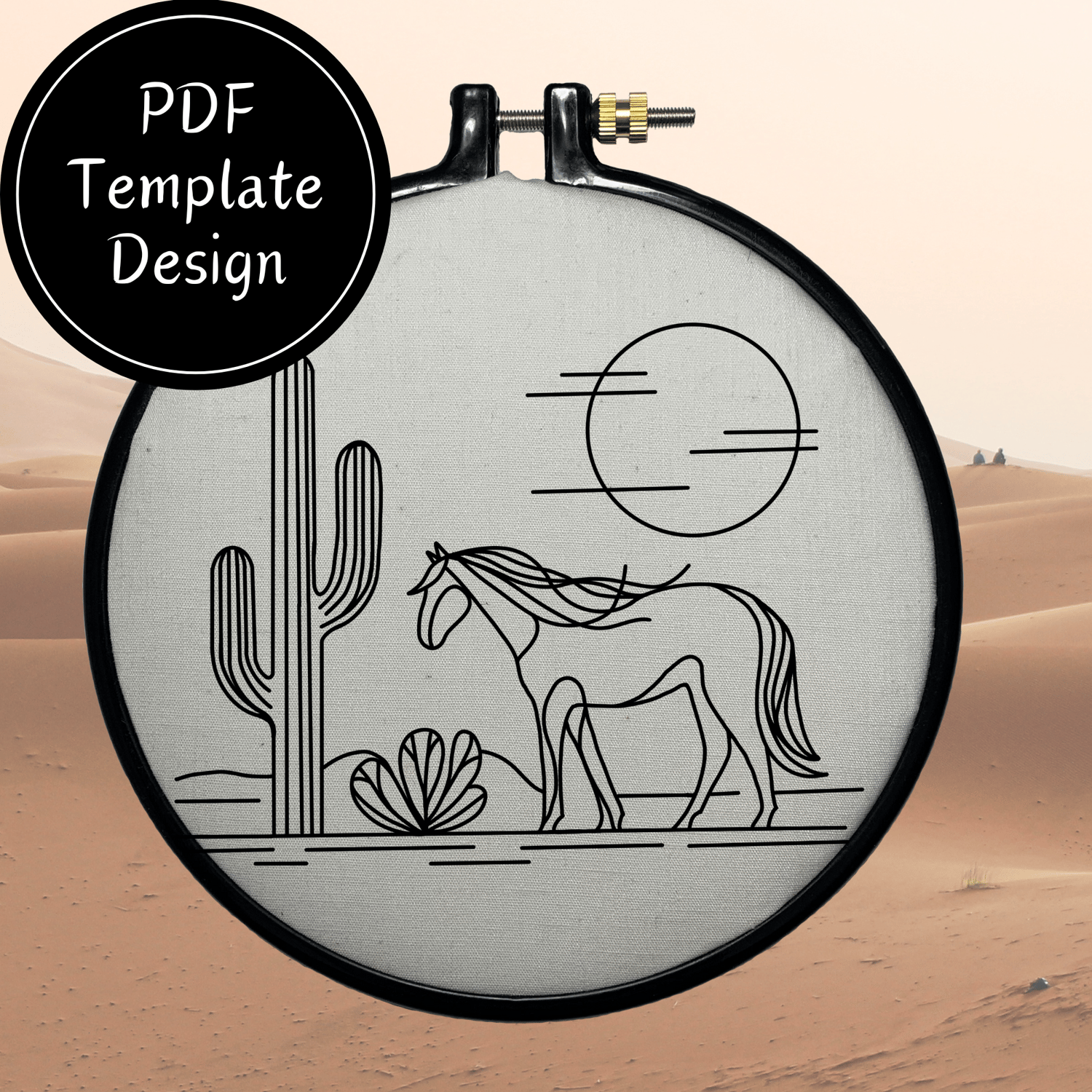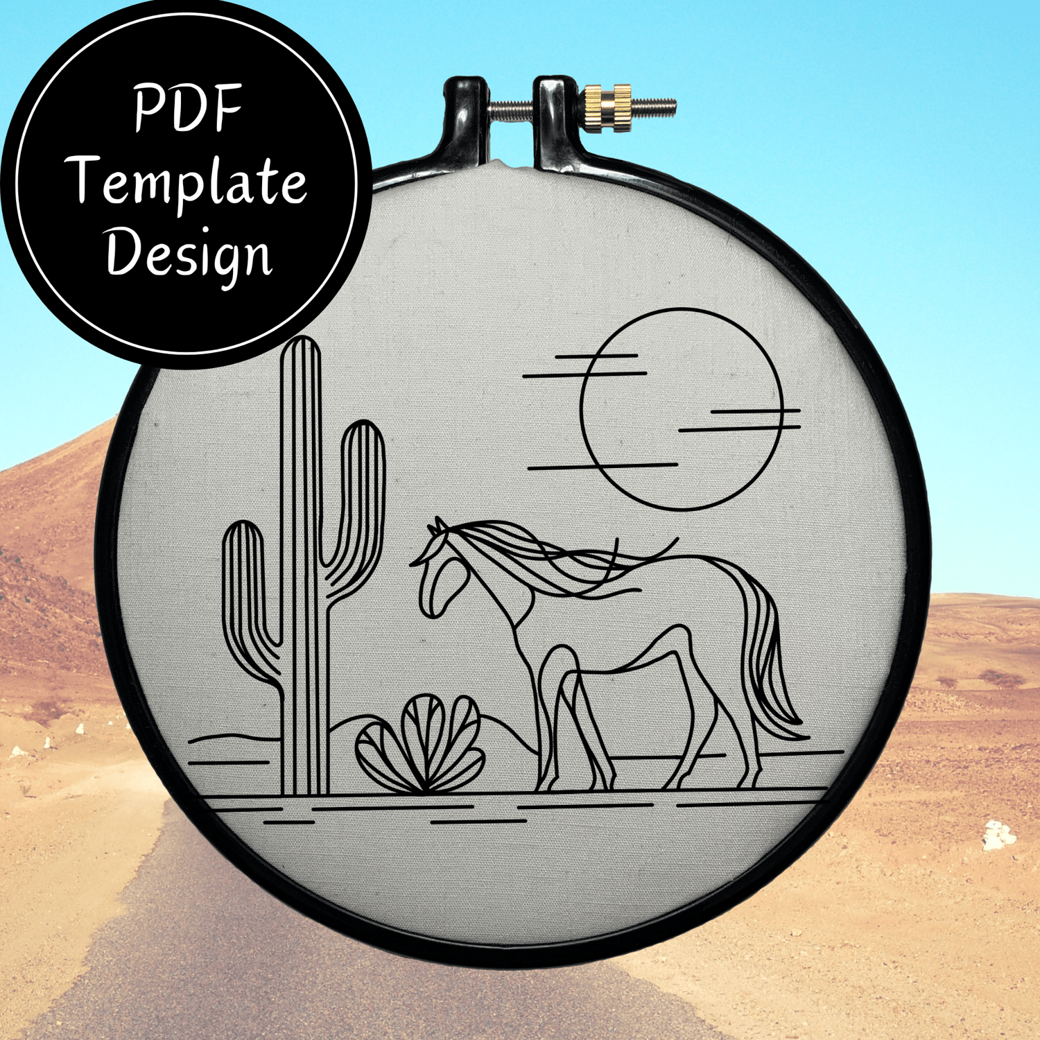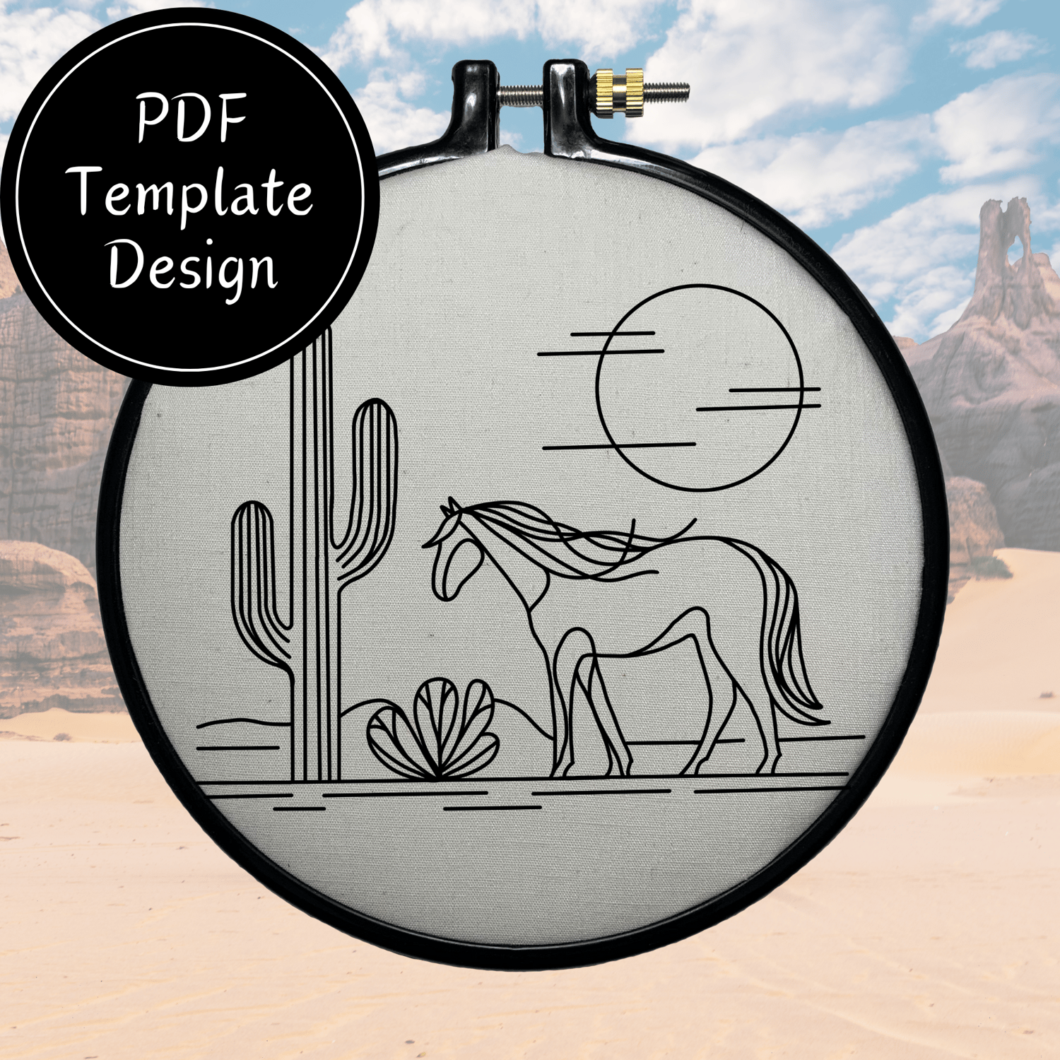 Horse In Hot Desert Sun Hand Embroidery Pattern DIY Embroidery