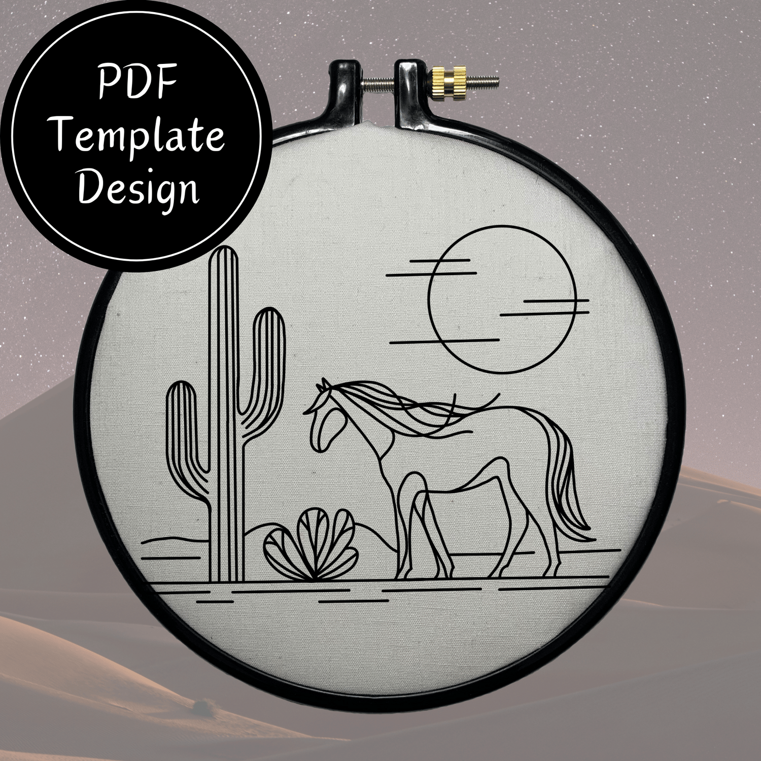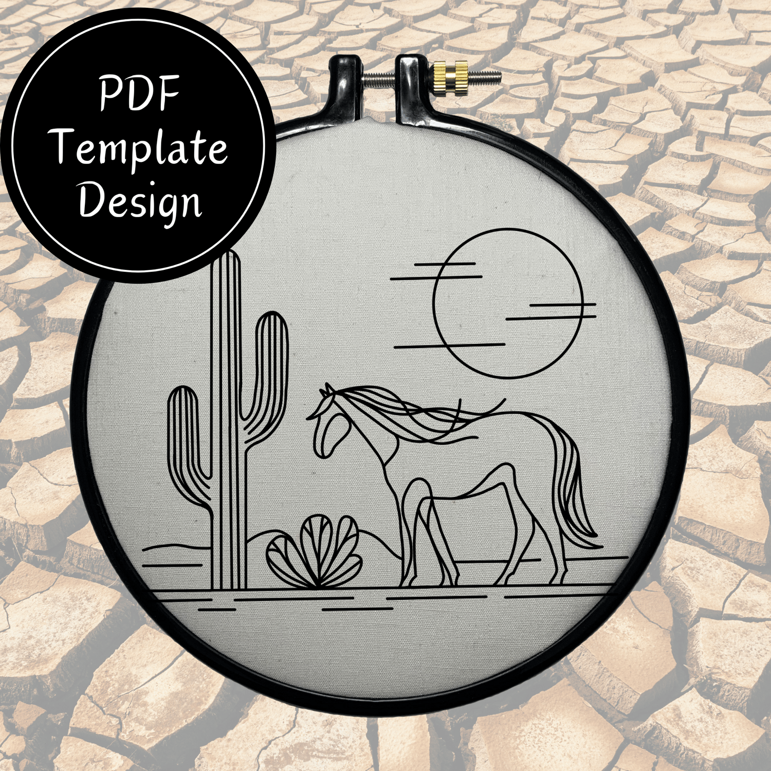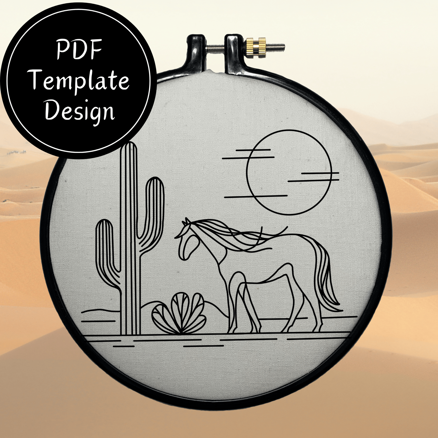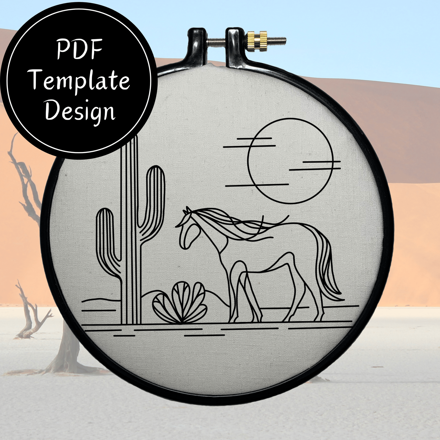 Horse In Hot Desert Sun Hand Embroidery Pattern DIY Embroidery