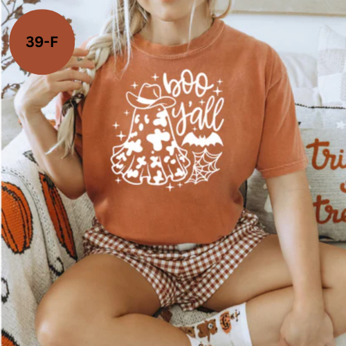 - 🎃 Spooky Fun: Spooky Vibes, Cowgirl Ghost Trio, Sorta Sweet Sorta Spooky, Let’s Go Ghouls, Boo Y’all, Witchy Ghost Tee