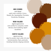+ Detailed Hex Codes, RGB, and CMYK values for each color