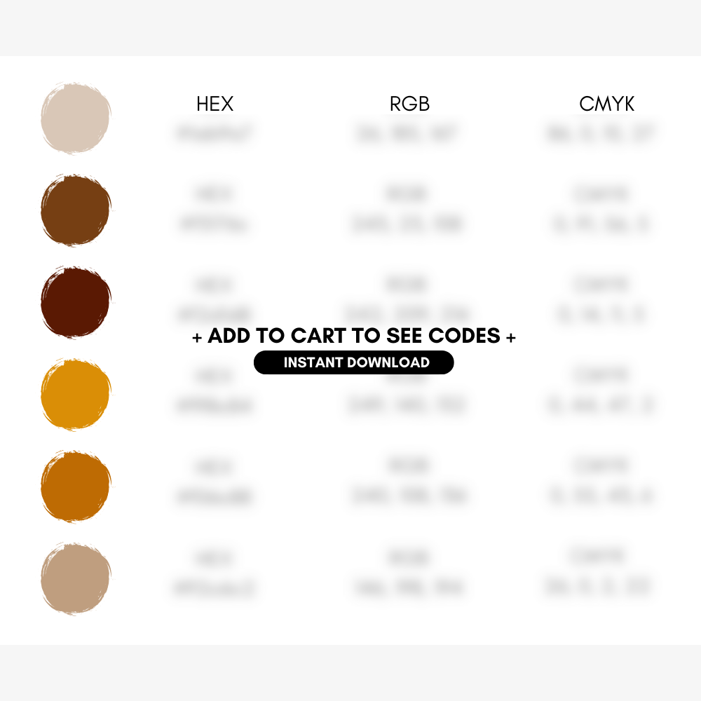 Transform your brand’s aesthetic with our enchanting Harvest Color Palette, perfectly curated for an inviting and warm autumn feel. This moody collection features a harmonious blend of sand, dark chocolate, coffee, light amber, and dark marigold yellow, alongside soothing beige, to evoke a sense of cozy fall evenings. Ideal for small businesses looking to refresh their brand identity, this palette includes Hex Codes, RGB, and CMYK values for seamless integration into any design tool, including Canva and Procreate. Whether you're redesigning your logo, social media banners, or packaging, these digital colors will enhance your marketing materials and print designs with a cohesive and sophisticated look. Elevate your brand’s presence this season with a palette that captures the essence of autumn’s charm.