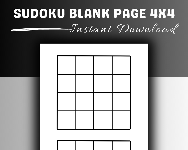 Sudoku Blank Page for 4x4 | Printable Pages | Instant Download PDF