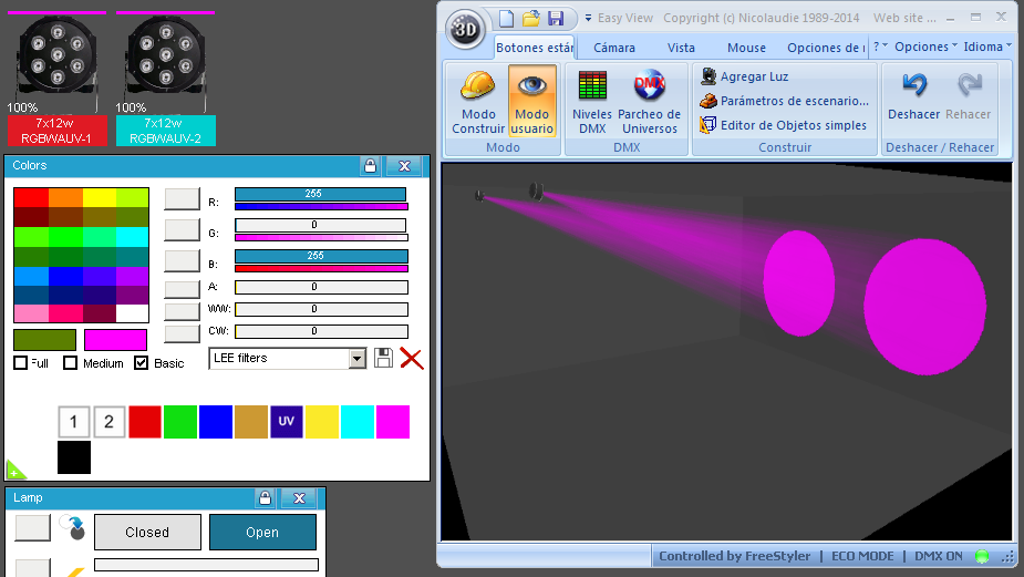 Esta Librería SSL2 está optimizada para trabajar con Magic 3d Easy View. Es decir para ver una representación 3D de las secuencias que estemos realizando con Freestyler, QLC+ o cualquier otro soft que se conecte con Magic 3d.