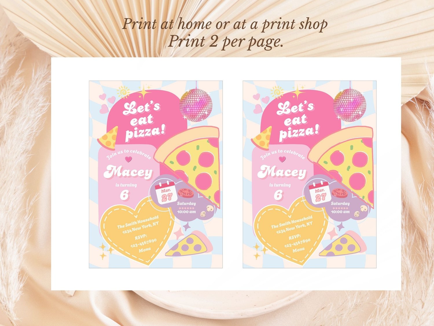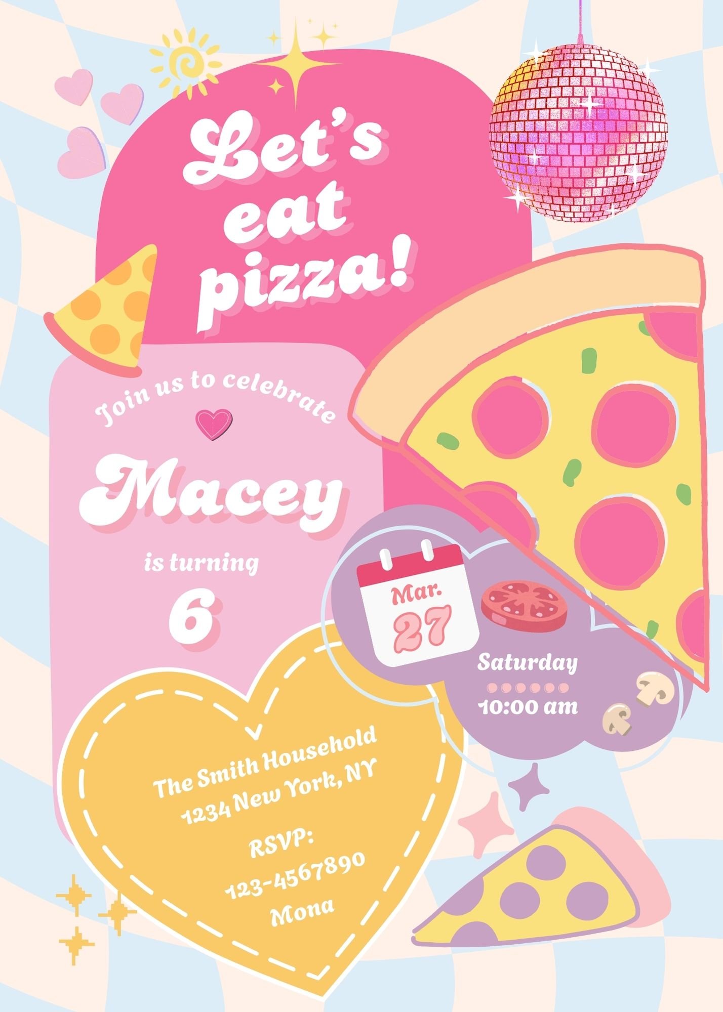 Throw the ultimate groovy girl birthday party with this fun retro 70s pizza birthday invitation template. Designed with pink disco vibes, playful pizza slices, and bold typography β this invite is perfect for a stylish and memorable celebration.