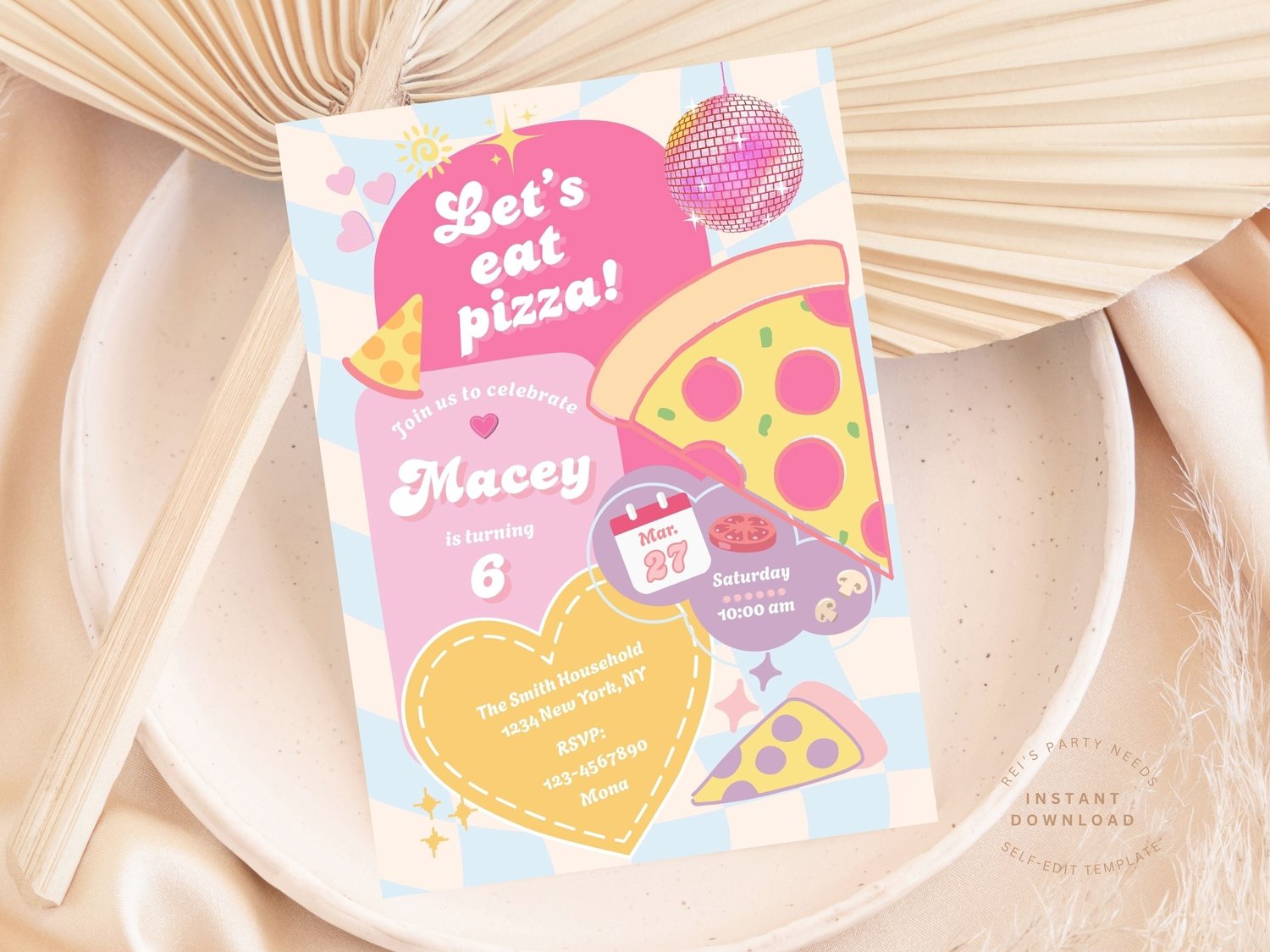 Pizza Party Birthday Invitation, Editable Template, A Slice of Fun, Any Age Birthday Party, Boy or Girl, Instant Download, 5x7,
