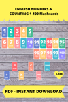ENGLISH Numbers 1 to 100 Flash Cards Printable PDF