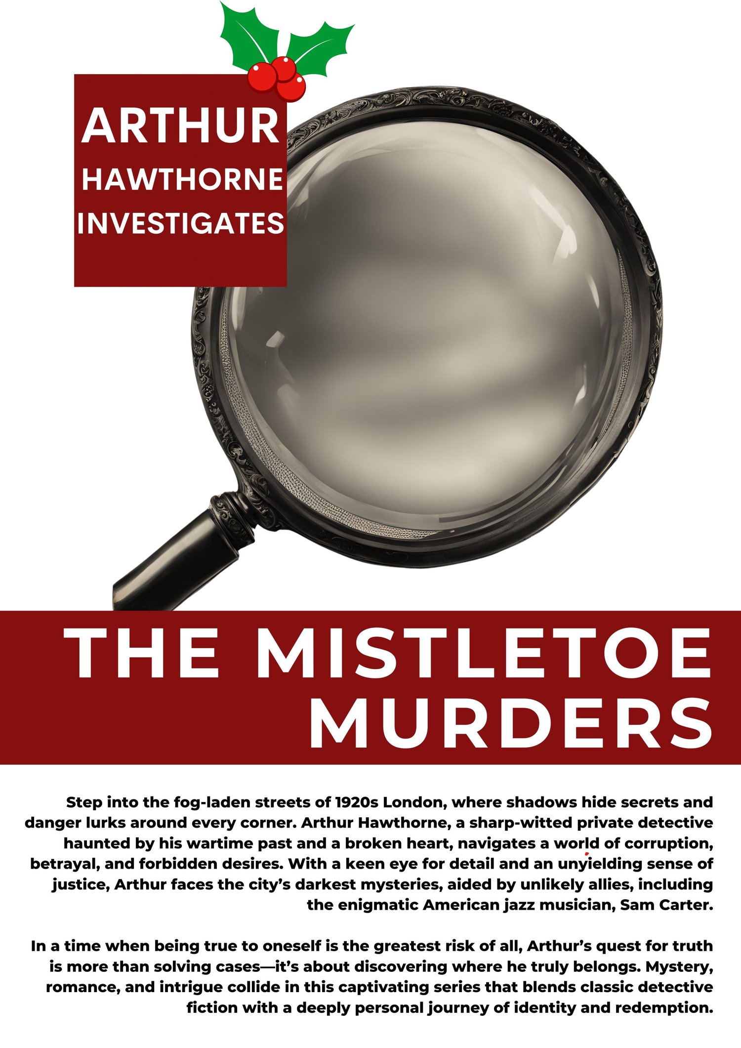 Step into the fog-laden streets of 1920s London, where shadows hide secrets and danger lurks around every corner. Arthur Hawthorne, a sharp-witted private detective haunted by his wartime past and a broken heart, navigates a world of corruption, betrayal, and forbidden desires. With a keen eye for detail and an unyielding sense of justice, Arthur faces the city’s darkest mysteries, aided by unlikely allies, including the enigmatic American jazz musician, Sam Carter.