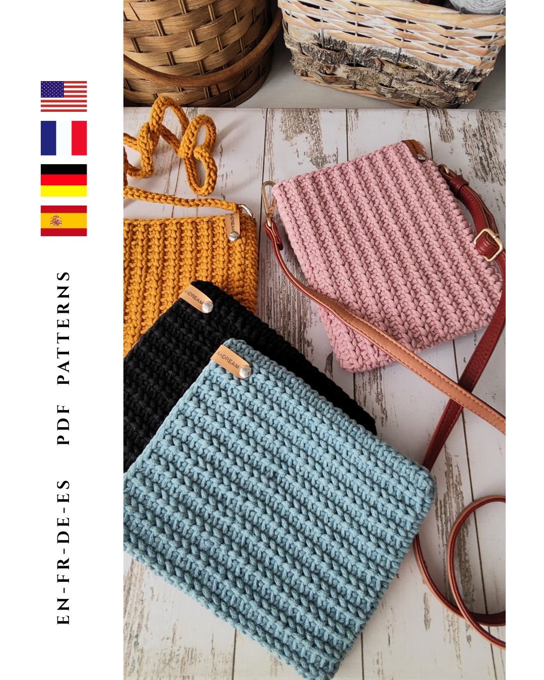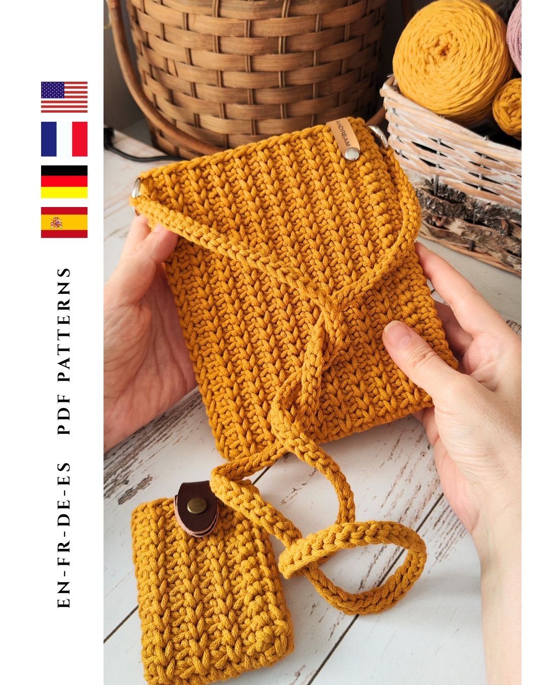 Knit Purl Crossbody — modern crochet bag pattern with a beautiful knit-look texture, made from premium cotton rope yarn. Stylish, durable, lightweight design perfect for everyday use. Beginner-friendly, clean, and timeless.
