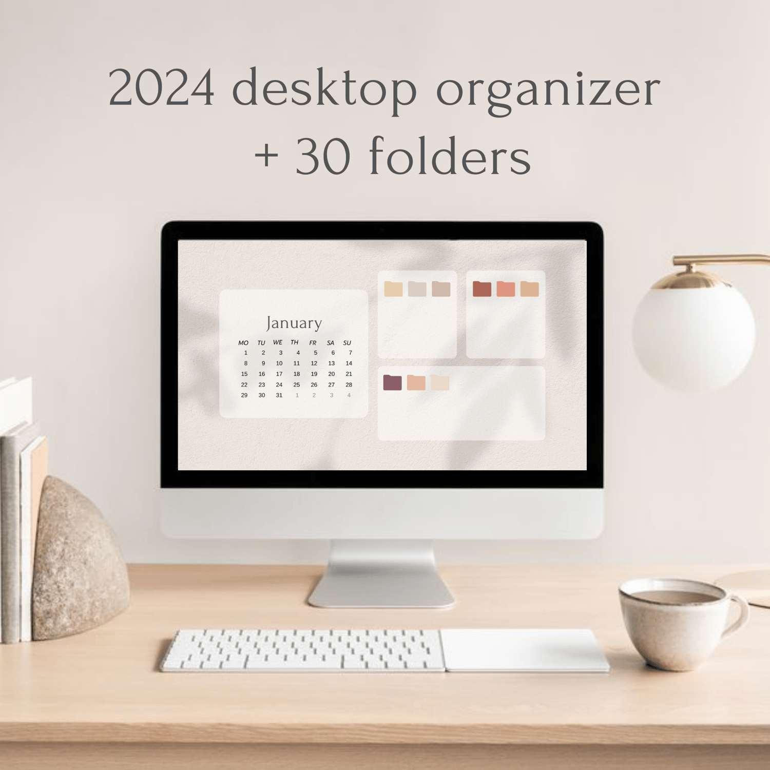 //2024 Calendar Wallpaper | Minimalist Aesthetic Calendar for Laptop and Computer with 12 Months - Warm Neutral Background | Direct Download | Includes 30 Free Folder Icons for Your Computer Folders//