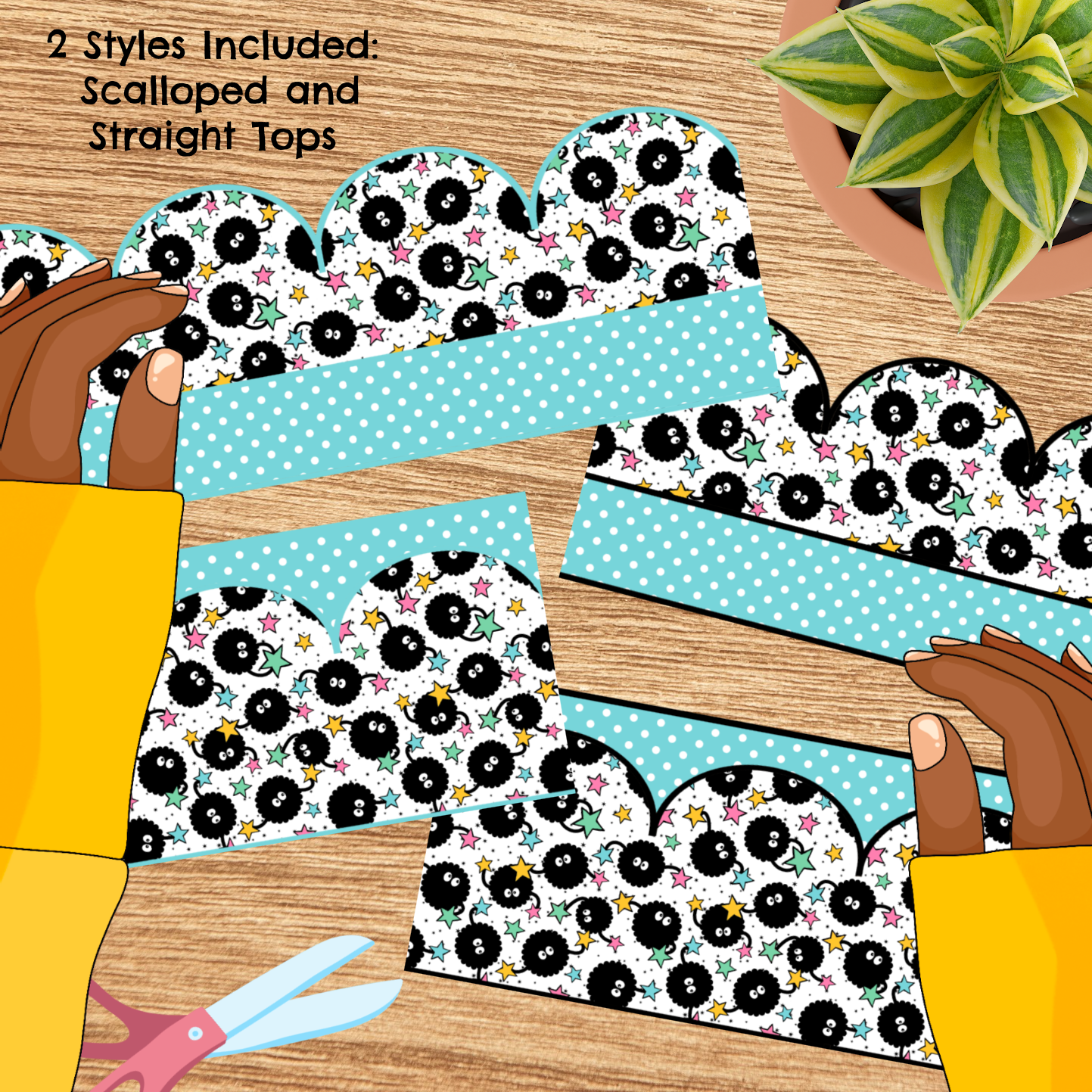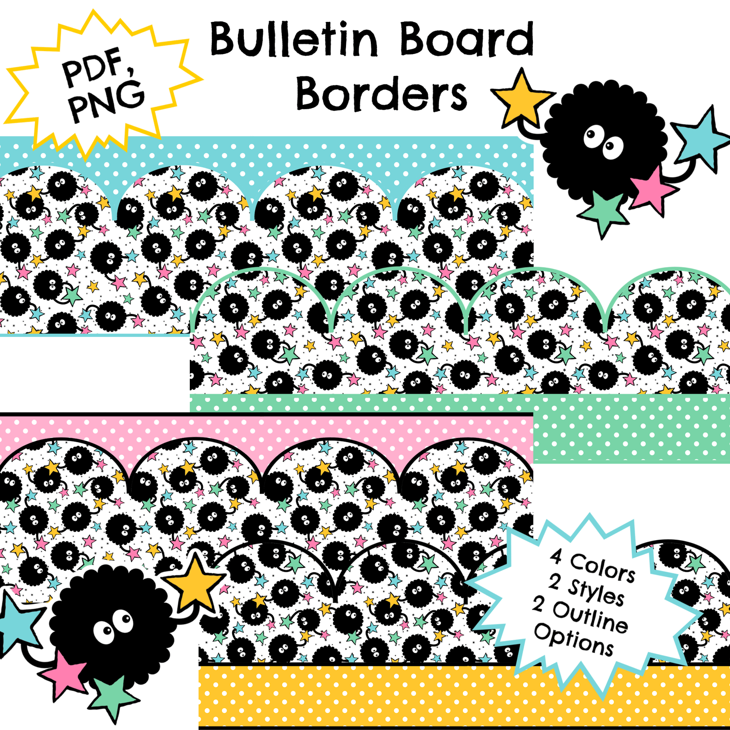 Soot Sprites Printable Bulletin Board Borders Edges PDF PNG 4 Colors