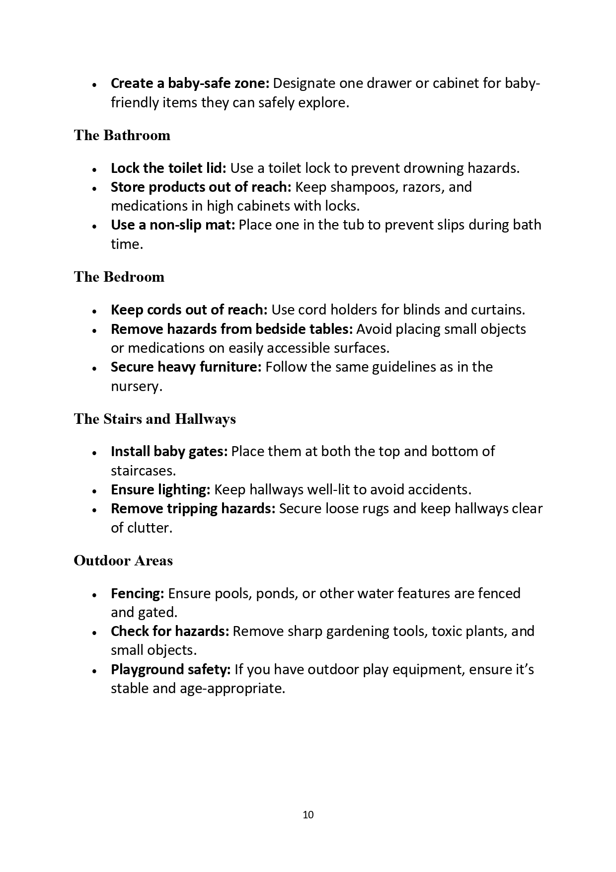 - Safety First: Detailed baby-proofing strategies for every room, ensuring your home is free from common hazards.
