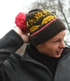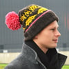 The Old School Gaming Hat is completely seamless and knitted from the bottom up. The colorwork pattern for the body of the hat is provided charted only. All other instructions are in written form