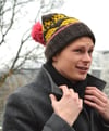 - Yarn: Main color (gray): 100 (125, 150) m (110 (135, 165) yds) / 50 (62, 75) g, contrast color 1 (pink): 21 (26, 32) m (22 (28, 33) yds) / 27 (30, 32) g, contrast color 2 (yellow): 21 (26, 32) m (22 (28, 33) yds) / 27 (30, 32) g. In the adult sized aran weight sample Peruvian Highland Wool by Filcolana [100% wool; 100 m (109 yds) per 50 g skein] was used. Substitute any wool aran weight yarn for a similar teen/adult sized result. For a child sized hat, choose a DK or light worsted weight yarn instead.