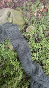 Inspiration for this scarf came from the variety of flora along the pathways. As you knit this scarf, I hope that you, too, feel the comfort of the gentle sunlight streaming through the branches of the oaks, the soft whispers of the ferns brushing against one another, and the cool silence of the moss.