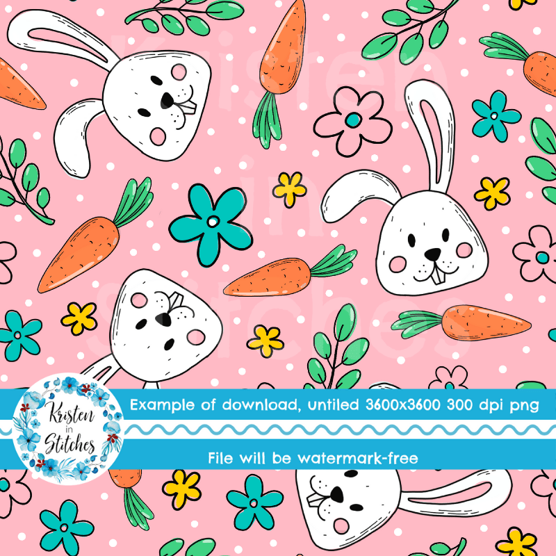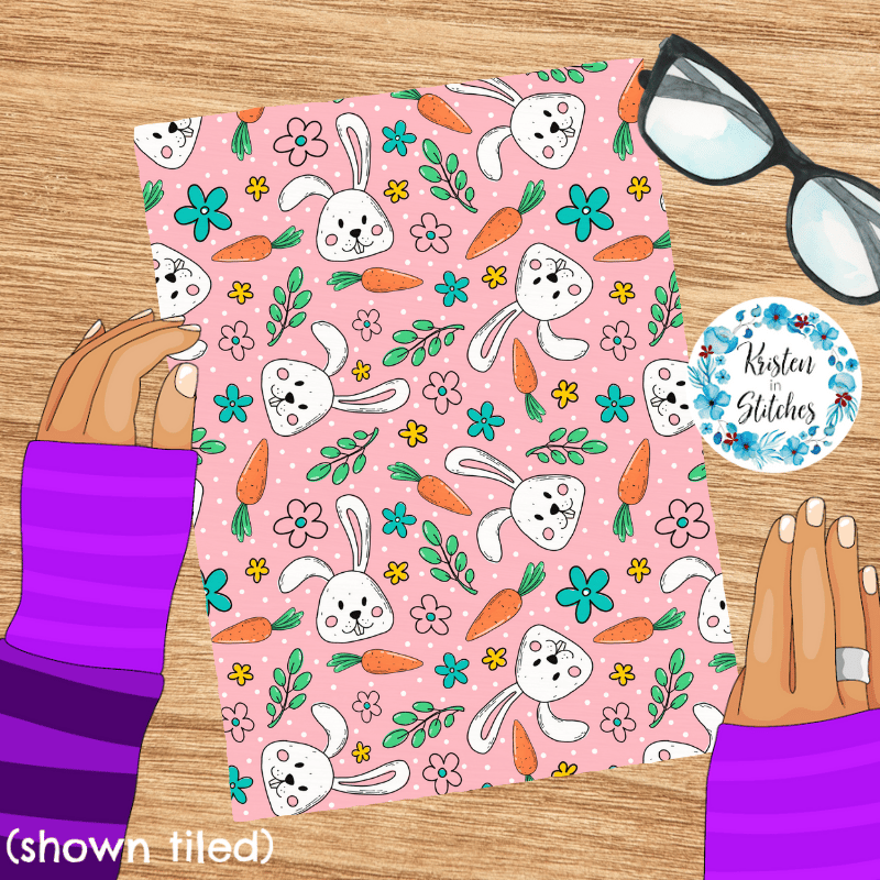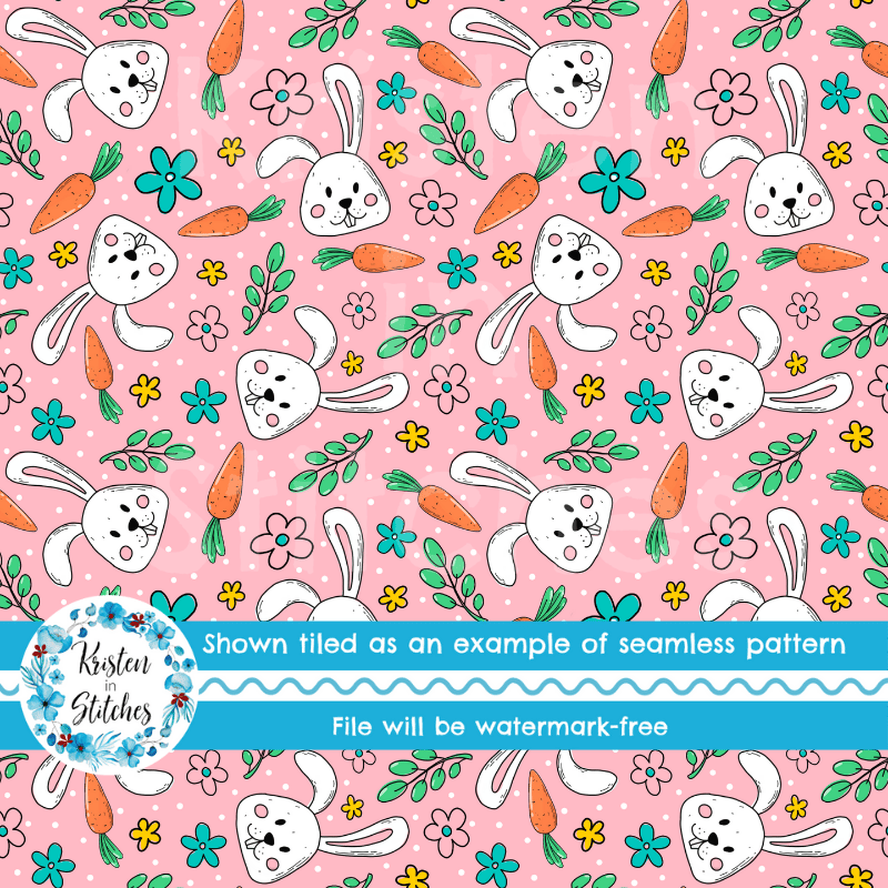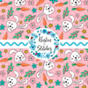 Spring Bunny Seamless Pattern, Easter Bunnies in Pink
