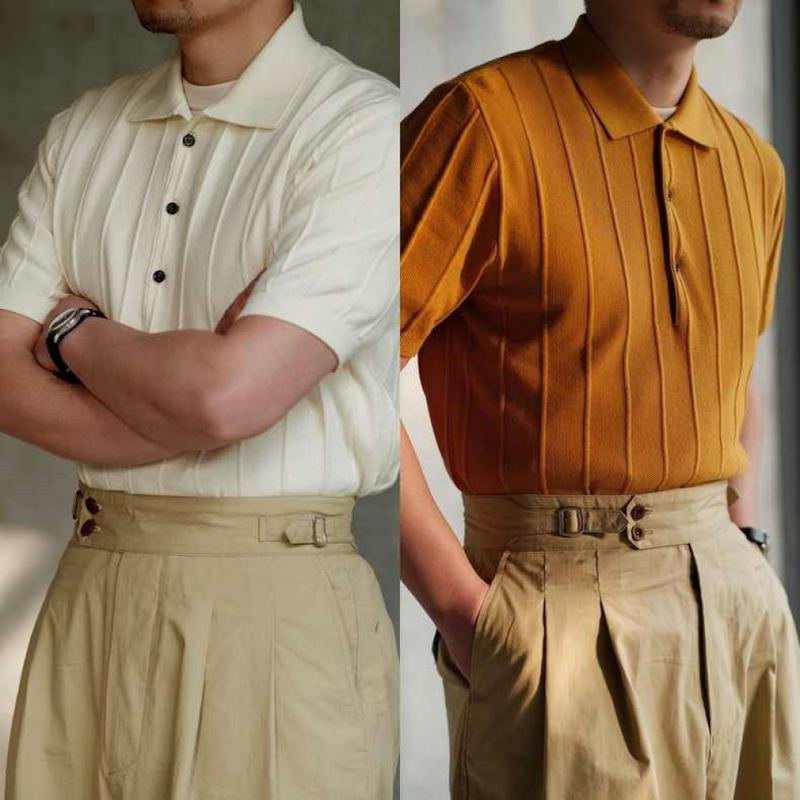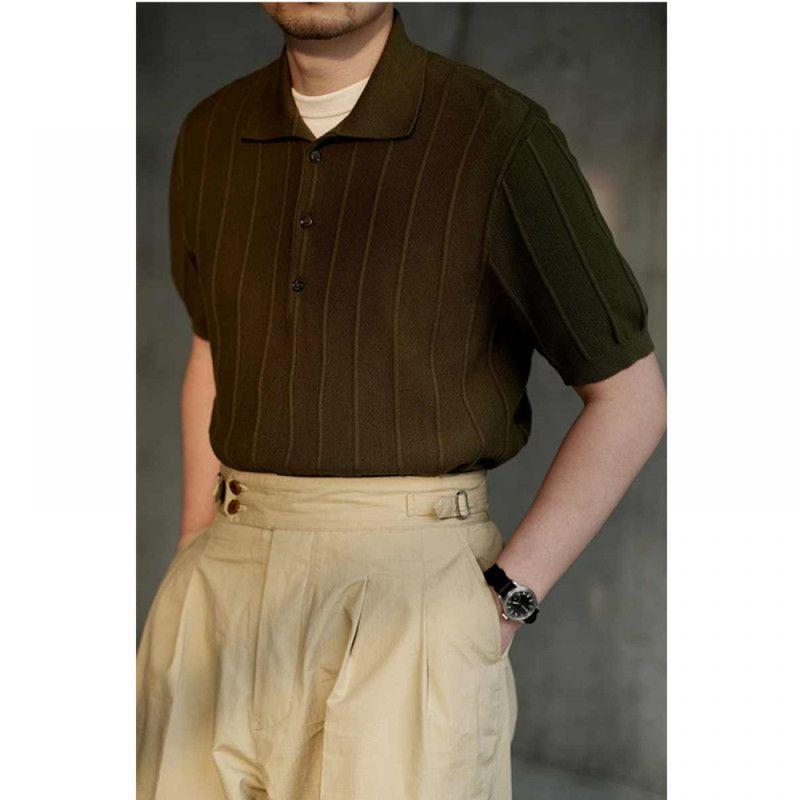 Short-Sleeve Polo Shirt for Men, Affordable Price, Elegant and Premium, Slim Fit, Polo Collar, Striped, Knitwear, Everyday Wear.