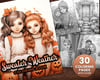 30 Sweater Weather Autumn Coloring Book, Adults + kids- Download - Grayscale Coloring Page - Gift, Printable PDF, Halloween, pumpkins, Fall