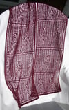 Originally knit in fingering-weight Handmaiden Sea Silk, it was also test-knit as a shawl in Handmaiden Lace Silk and as a beaded scarf in Jaggerspun Zephyr.
