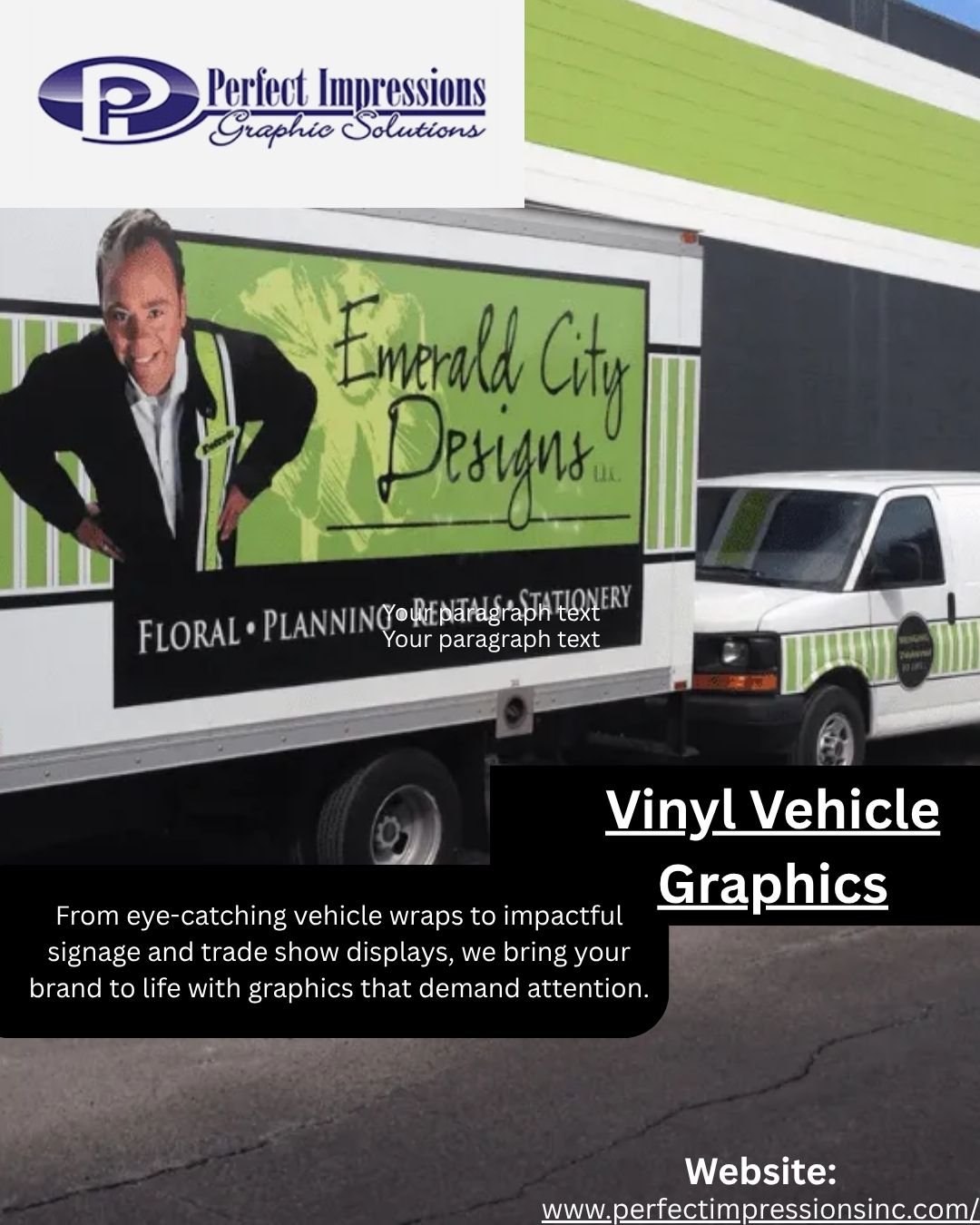 At Perfect Impressions, we understand that no two businesses are alike. That’s why we offer a wide range of vehicle graphic options: