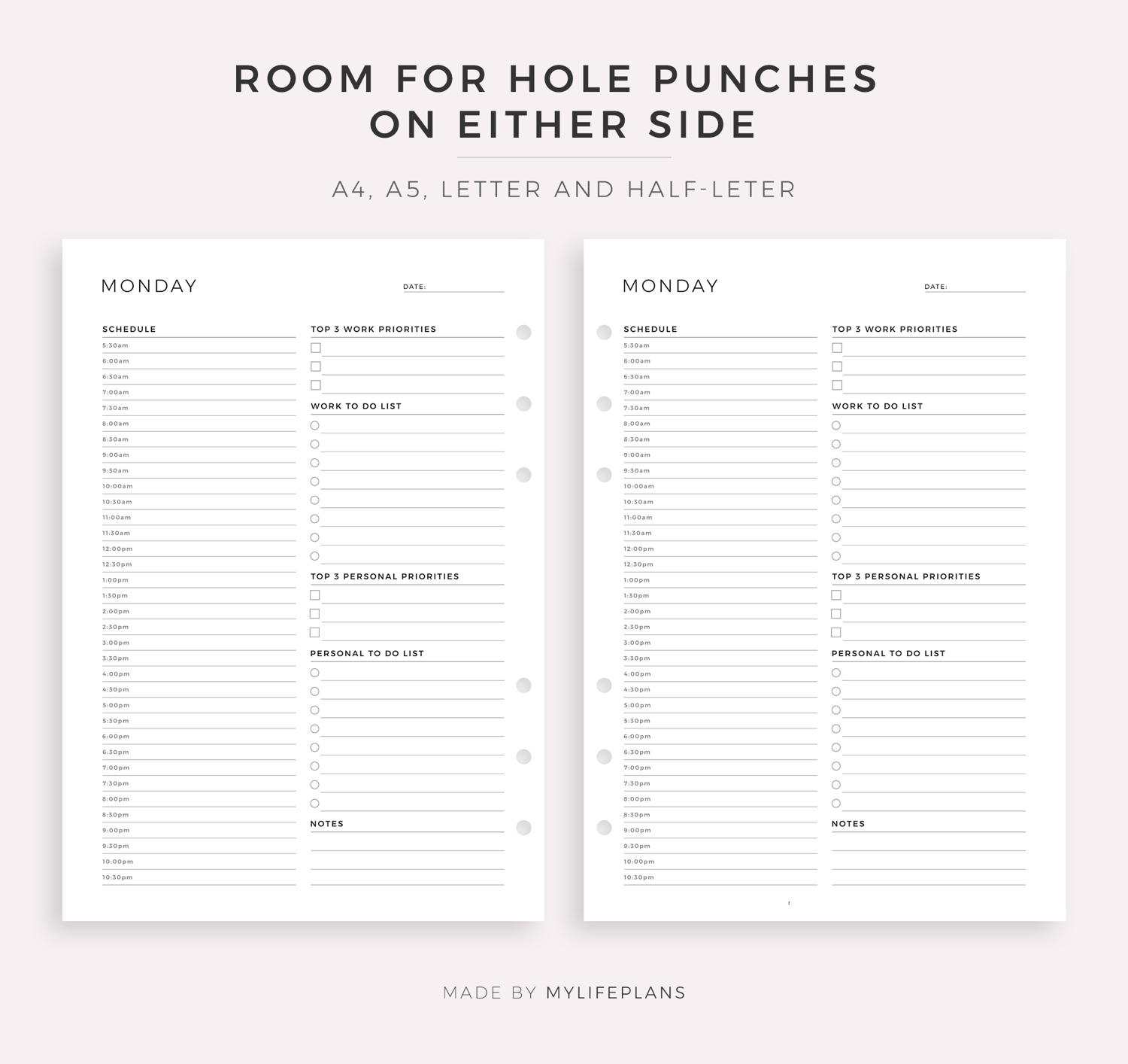 • Includes A4, Letter, and Fillable(A4) planners