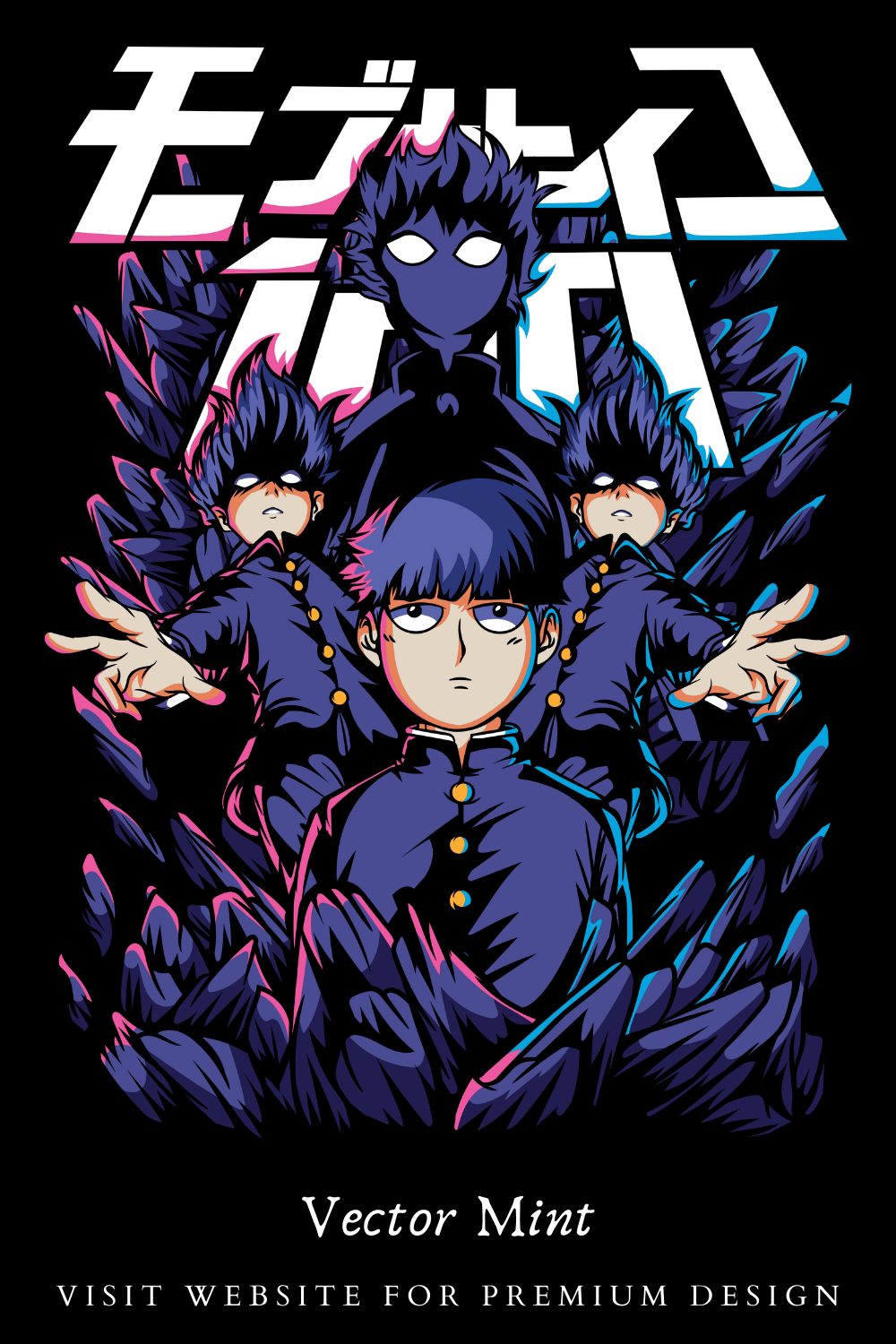 Mob Psycho 100 Shigeo Kageyama Anime Streetwear T Shirt Design PNG Psychic Power Manga Graphic Premium Style