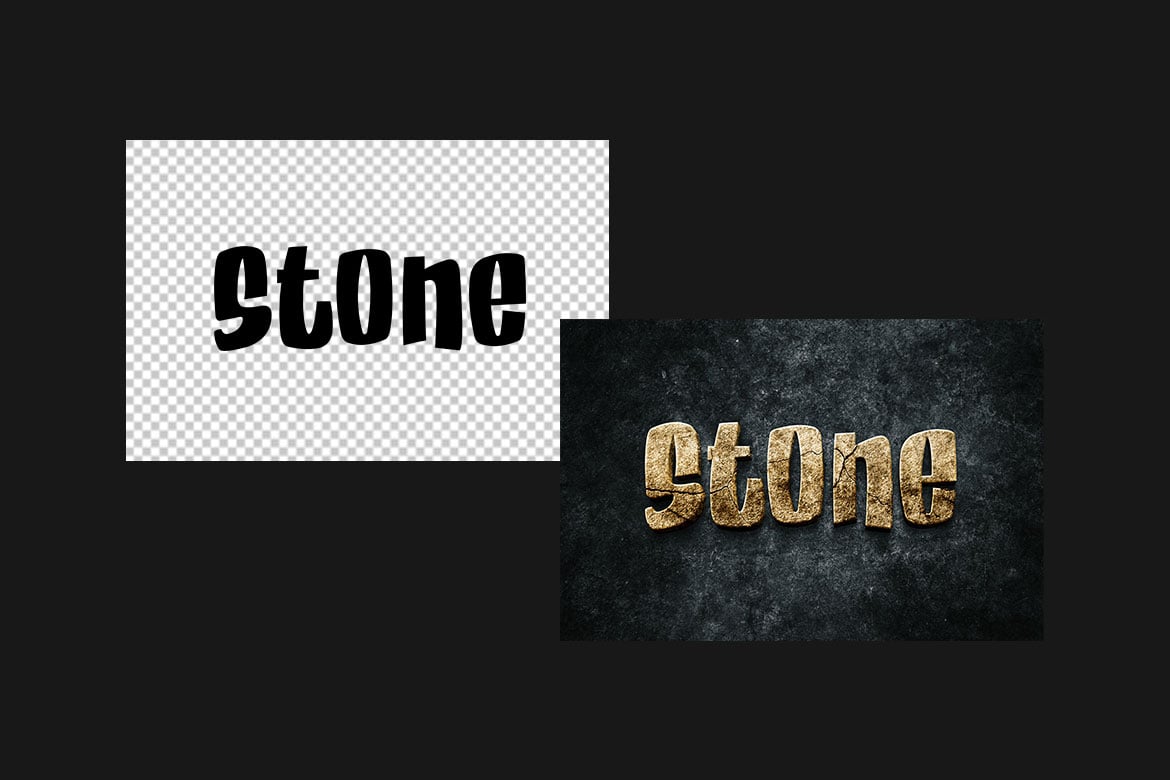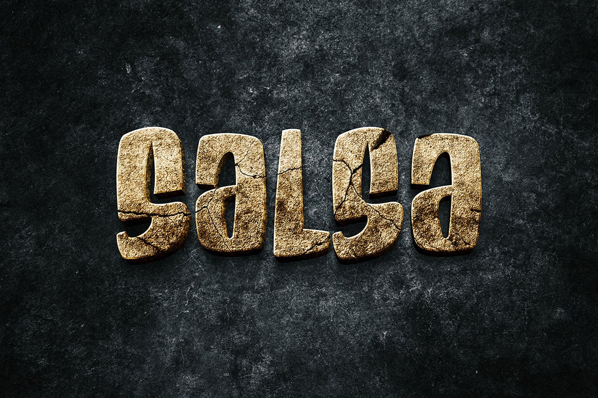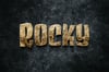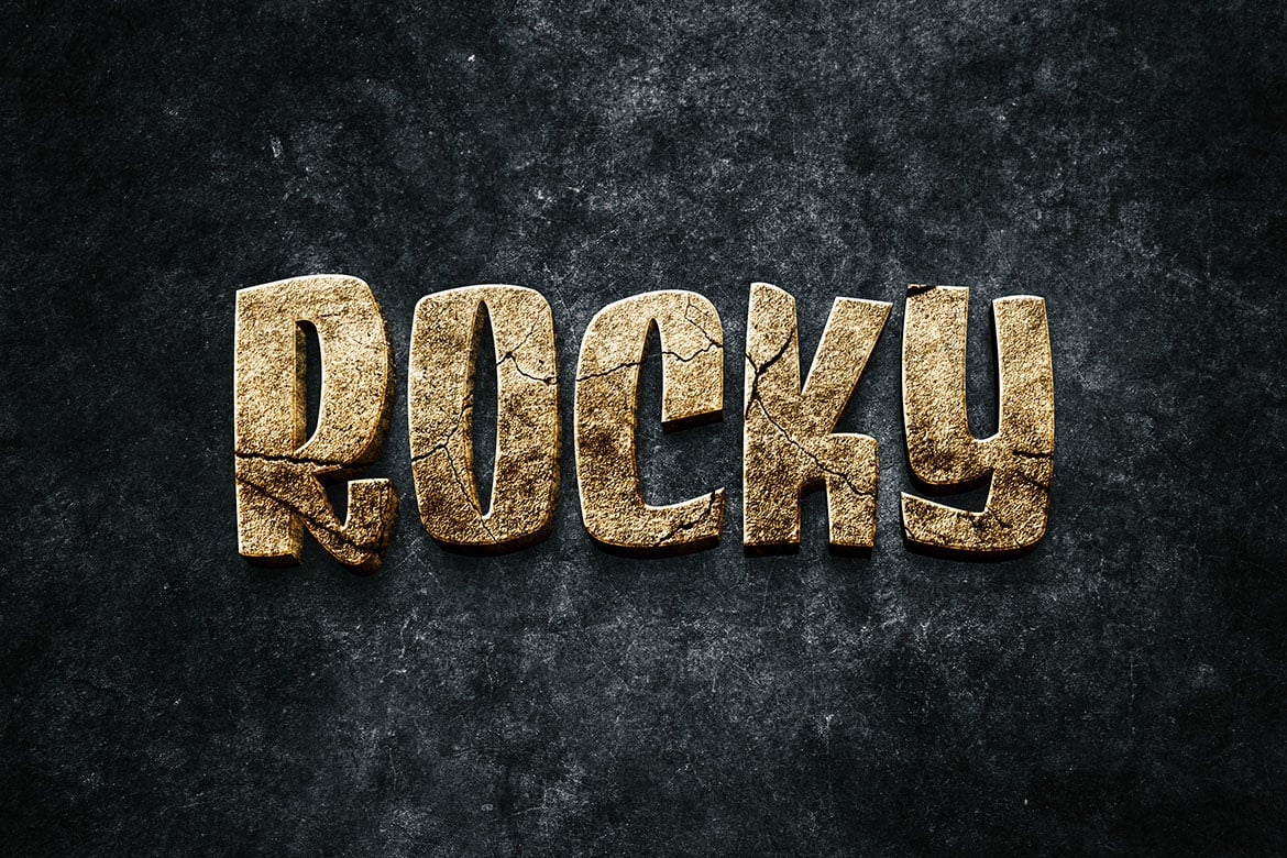 Features a cracked golden stone effect, giving each letter the appearance of being sculpted from solid, weathered rock coated in metallic gold. Conveys strength, durability, and a bold, ancient aesthetic.