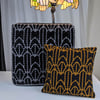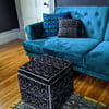 Pattern includes steps to create the reversible pillow pictured here, as well as tips for making an ottoman cover in velvet and party yarn!