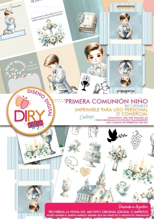 1 plancha con la plantilla para armar un contenedor tipo valijita, ideal para llevar las estampitas, tarjetitas o pequeños regalitos.