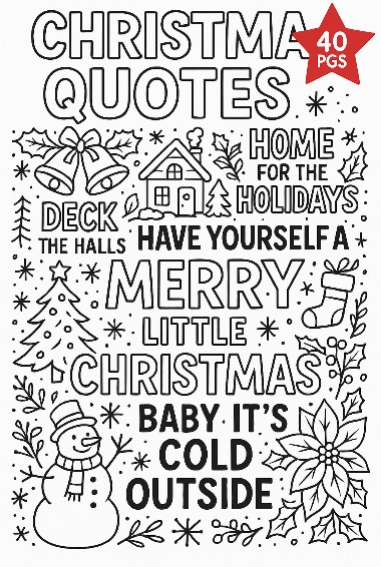 Christmas Quotes Coloring Book | Holiday Coloring Pages for Kids and Adults | 40 Pages
