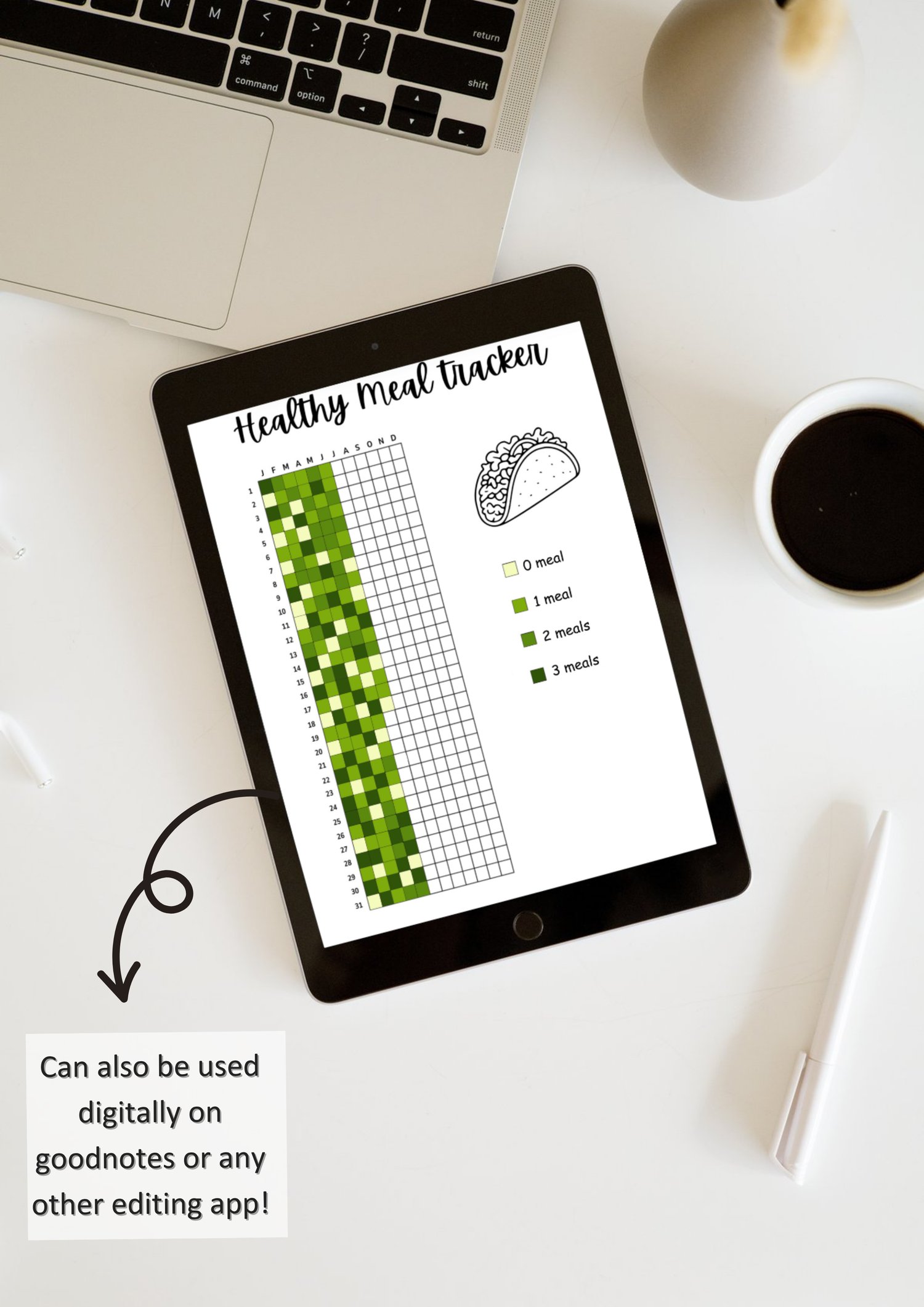 Make healthy eating a daily habit and track your nutritional consistency with this flexible Healthy Meal Tracker! This tool is perfect for visualizing your daily meal across the entire year. The tracker features a comprehensive yearly grid (1–31 days, J–D months). The layout includes space for 4 levels of tracking, which you can use to color-code the number of healthy meals you consumed each day. Since this is an instant digital download, you can print this tracker as many times as you need for continued use year after year! Use digitally in GoodNotes or print for detailed physical records.